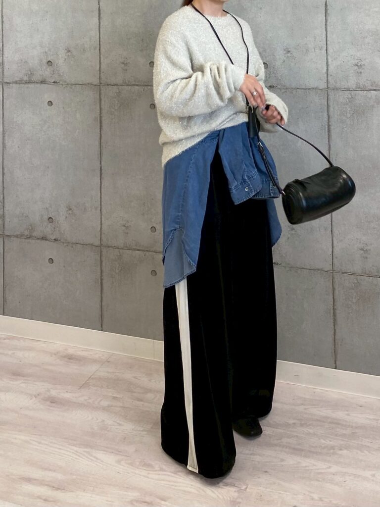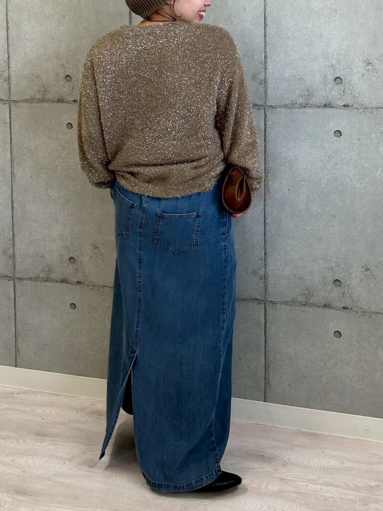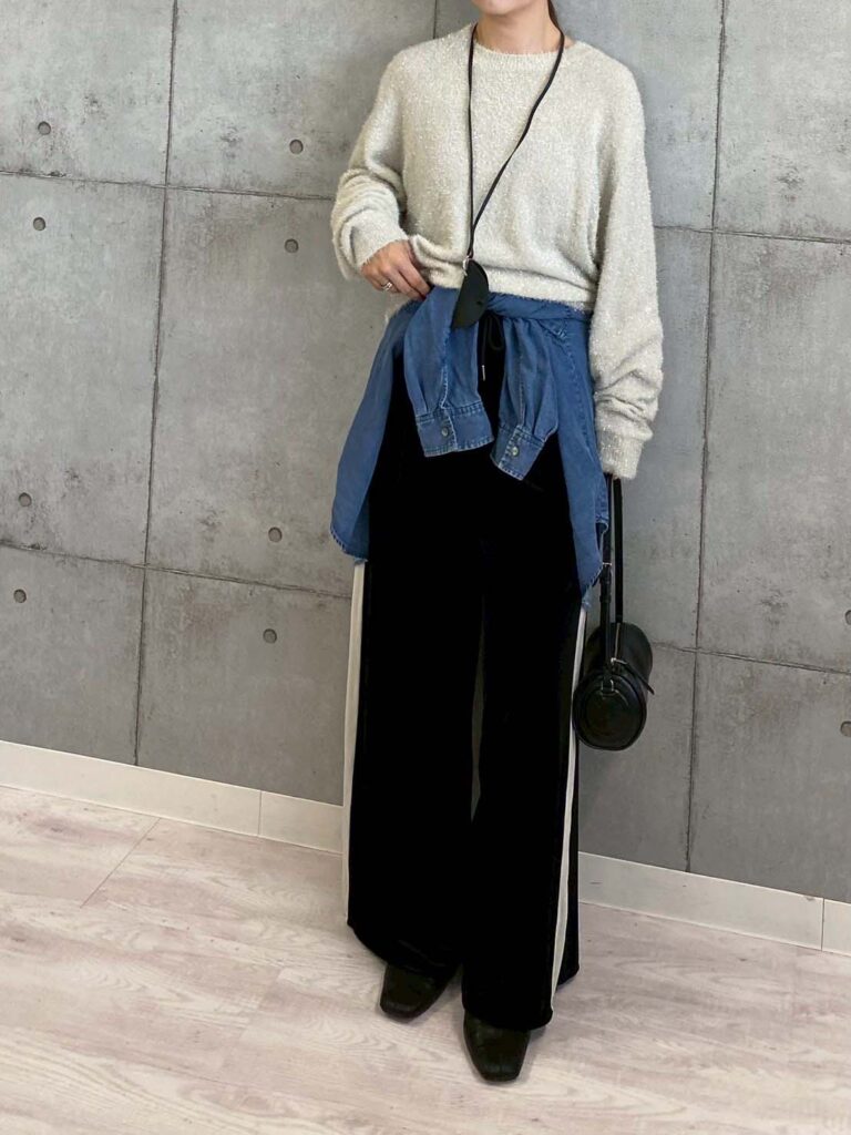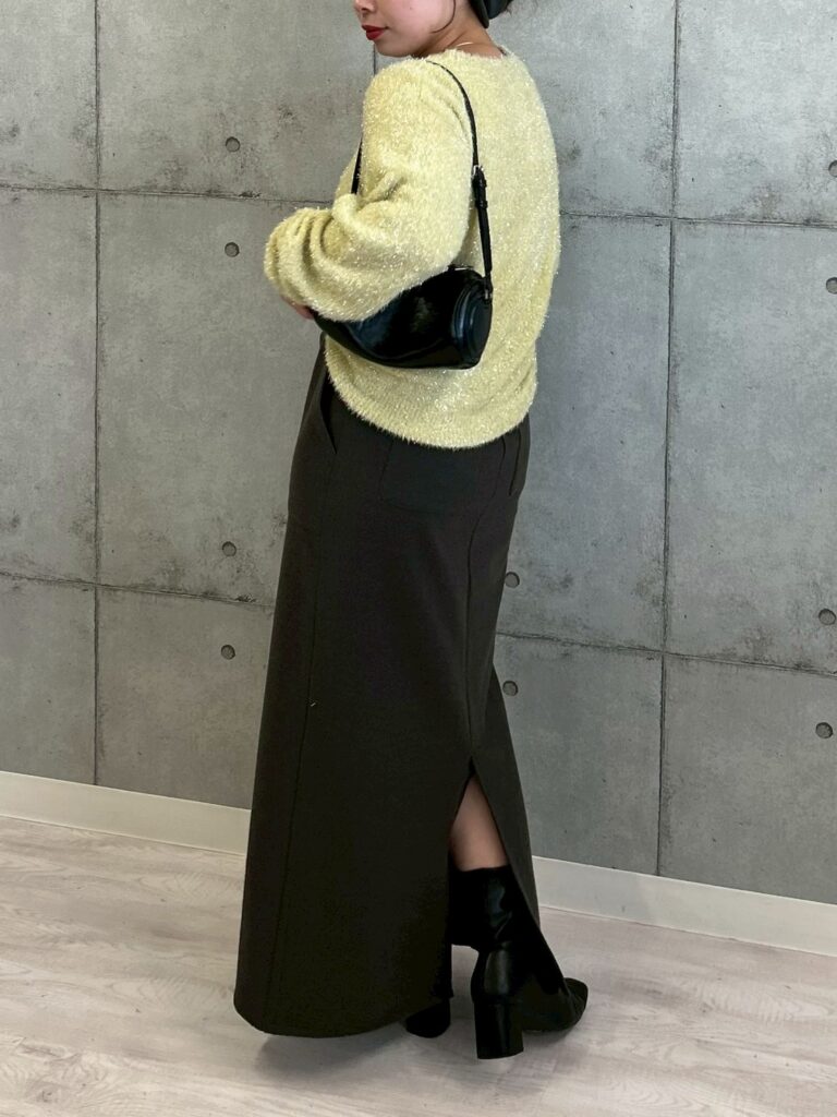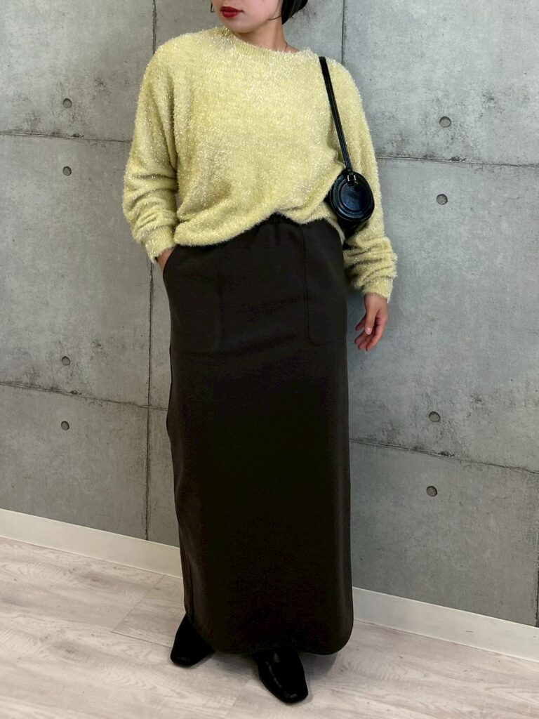 程よい毛足感とラメのきらめきが魅力のシャギー素材を使用した、肌触りふわふわのニット。シンプルなシルエットながら、素材に表情があり、一枚で大人可愛いスタイリングが叶います。カラー展開は、IV・BK・BEのベーシックカラーに加え、コーディネートのアクセントになるPINK・YELLOWの色物もご用意しており、気分やシーンに合わせて選べます。程よい丈感で、スカートにもパンツにもバランスよく合わせやすく、幅広いスタイリングに活躍する一枚です。