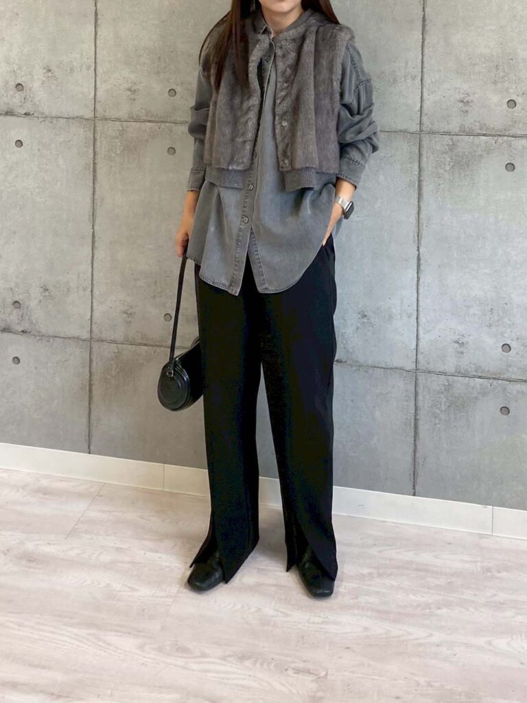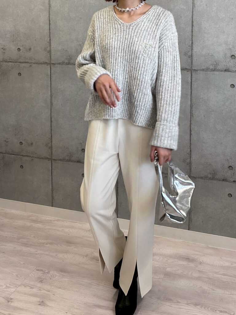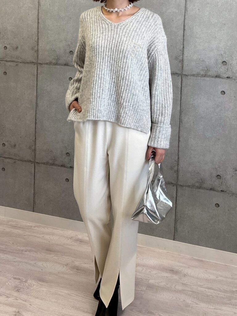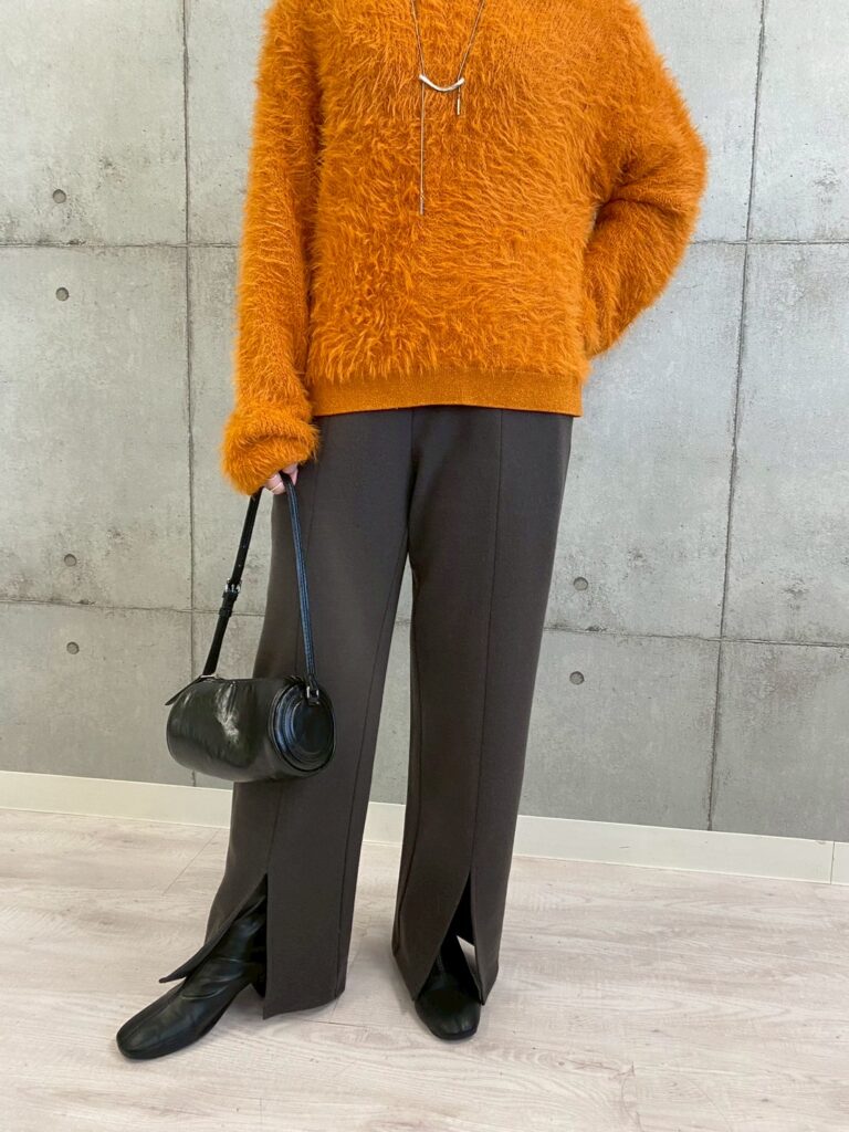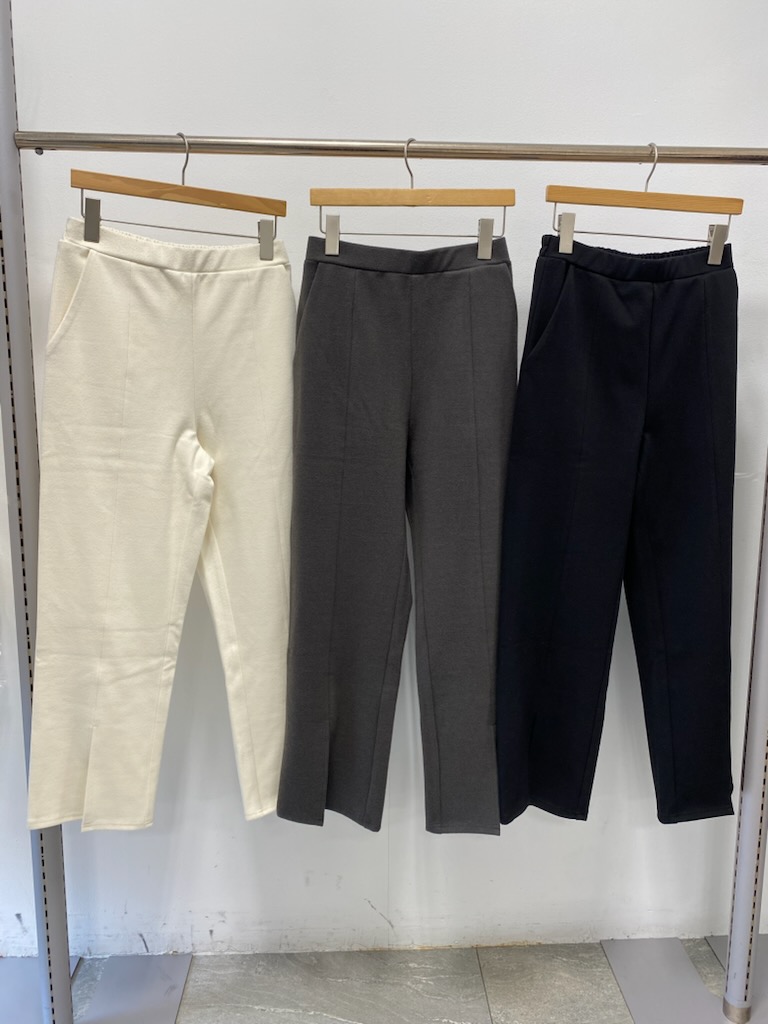 暖かさ抜群の裏起毛素材を使用したパンツは、冬の寒さからしっかりと守ってくれる快適な履き心地が魅力。センターの切り替え線が足を長く、細く見せる美脚効果を発揮し、スタイリッシュなシルエットを叶えます。裾にはセンタースリットを施し、重たくなりがちな冬のコーデに軽やかな抜け感をプラス。ブーツはもちろん、スニーカーとも相性が良く、幅広いシーンで活躍します。防寒とおしゃれを両立させた、冬のマストアイテムです。