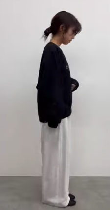 身巾はリラックス感のあるゆったりめに仕上げ、その分着丈はややコンパクトにしバランスを取りました。ボリュームのあるボトムスとも相性良く着用いただけます。