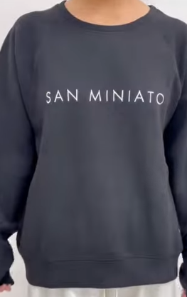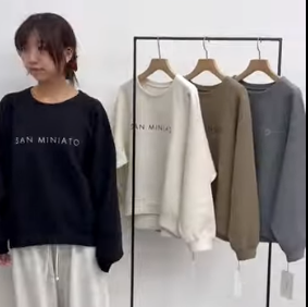 もちもちとした起毛カット生地を使用したトップスは前身頃にのせたロゴ刺繍がポイントです。