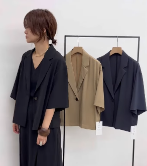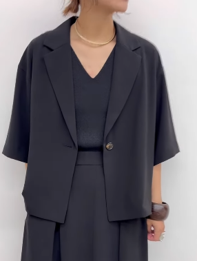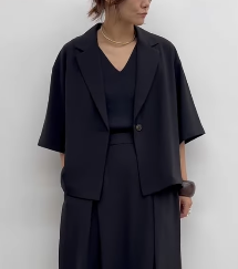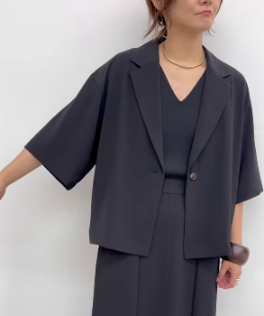 コンパクトな丈感が今年らしく、同素材のボトムとのセットアップがオススメです。512-85615同型