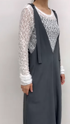 ゆったりとしたサイズはラインを拾う事なくスッキリとスタイルアップして着用頂けます。