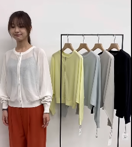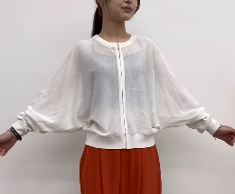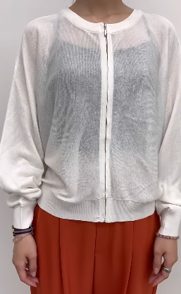 さらっとした、シアーの編み地を使用した、ドルマンスリーブのニットブルゾン。