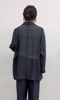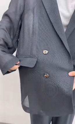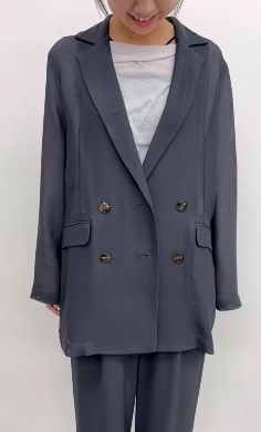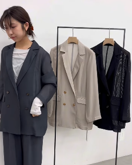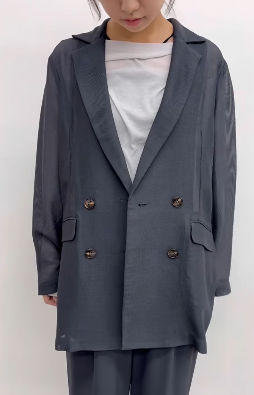 512-84505メッシュジャケットをベースにスッキリとした見え方にアップデートしました。カラミ素材が今年らしいジャケットはシンプルなダブルボタンのジャケットなので綺麗目にもカジュアルにも合わせ頂きやすいアイテムです。お尻にかかる丈感、シャツの様に軽く羽織れる素材でラフに着用出来るのも嬉しいポイントです。