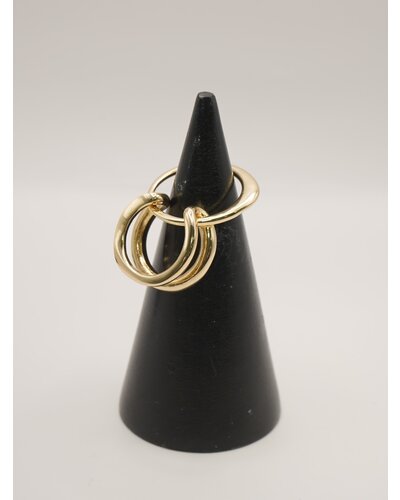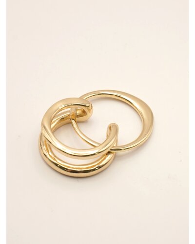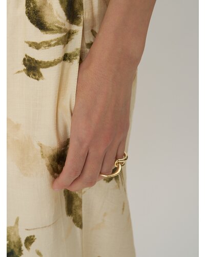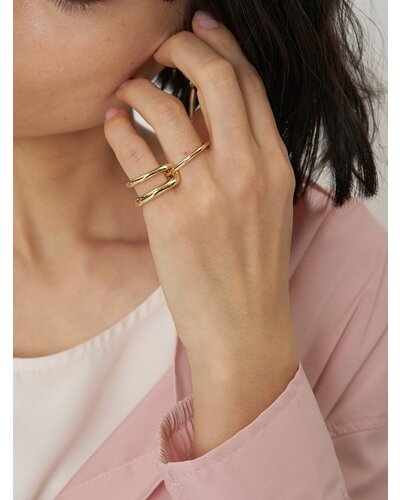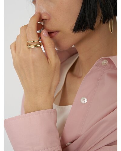 違う形のリングが連なったコネクトリングは、2本重ねて1本の指につけたり、1本ずつ指に通して2フィンガーリングにしたりと、2WAYとして着用可能となっております。リングのデザインもそれぞれ太さや形状が違うので、着ける角度によって見え方を変えることができます。リング裏面には「CHIGNON」の刻印入り。