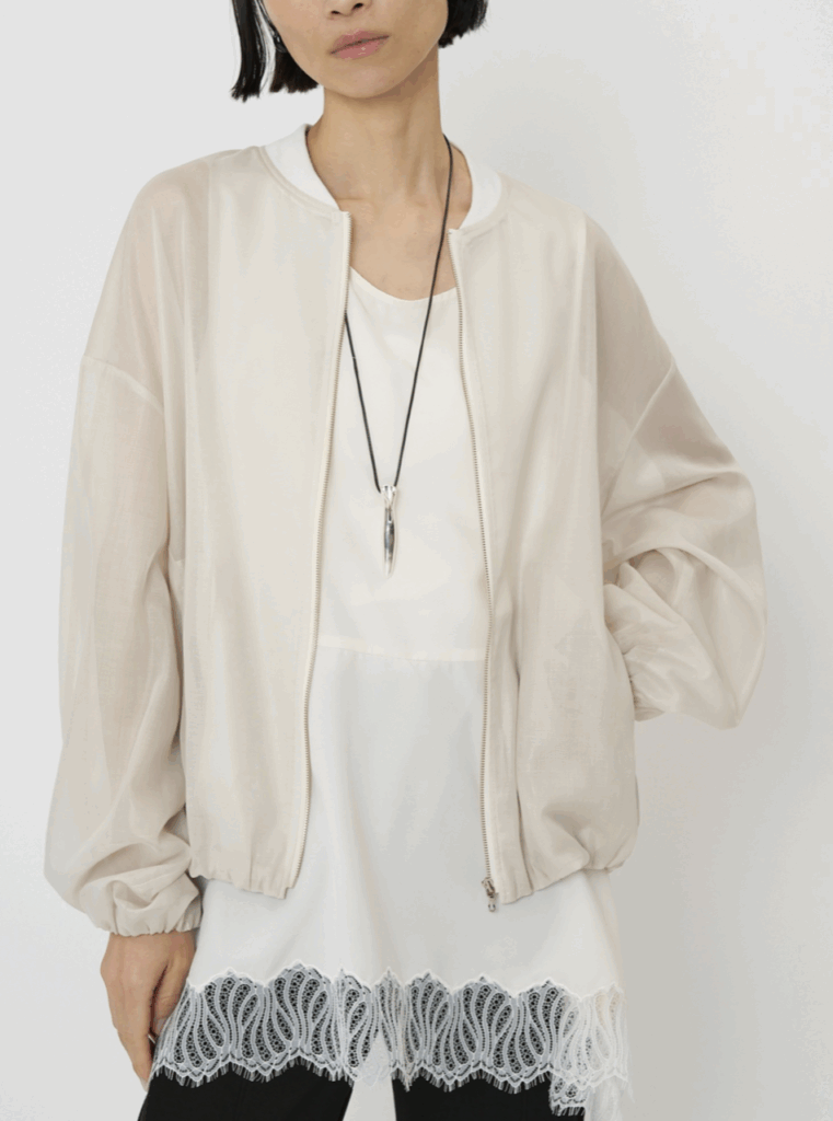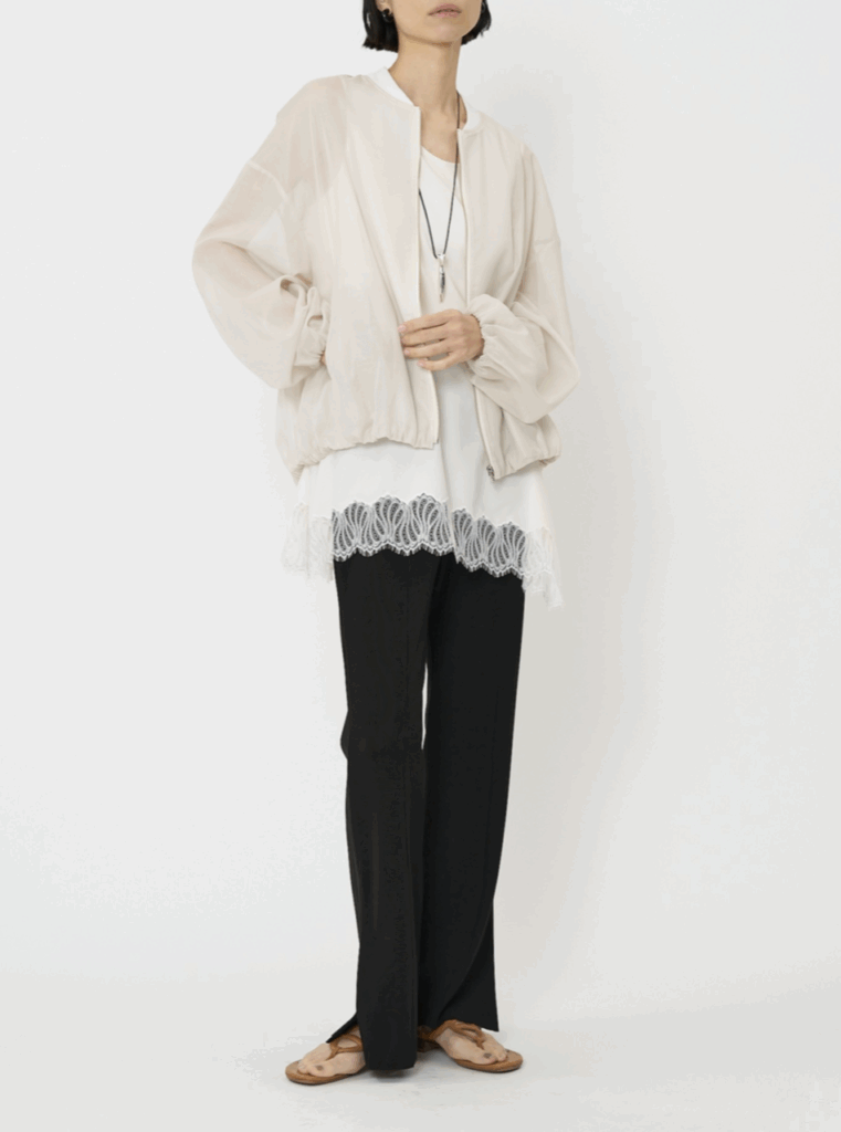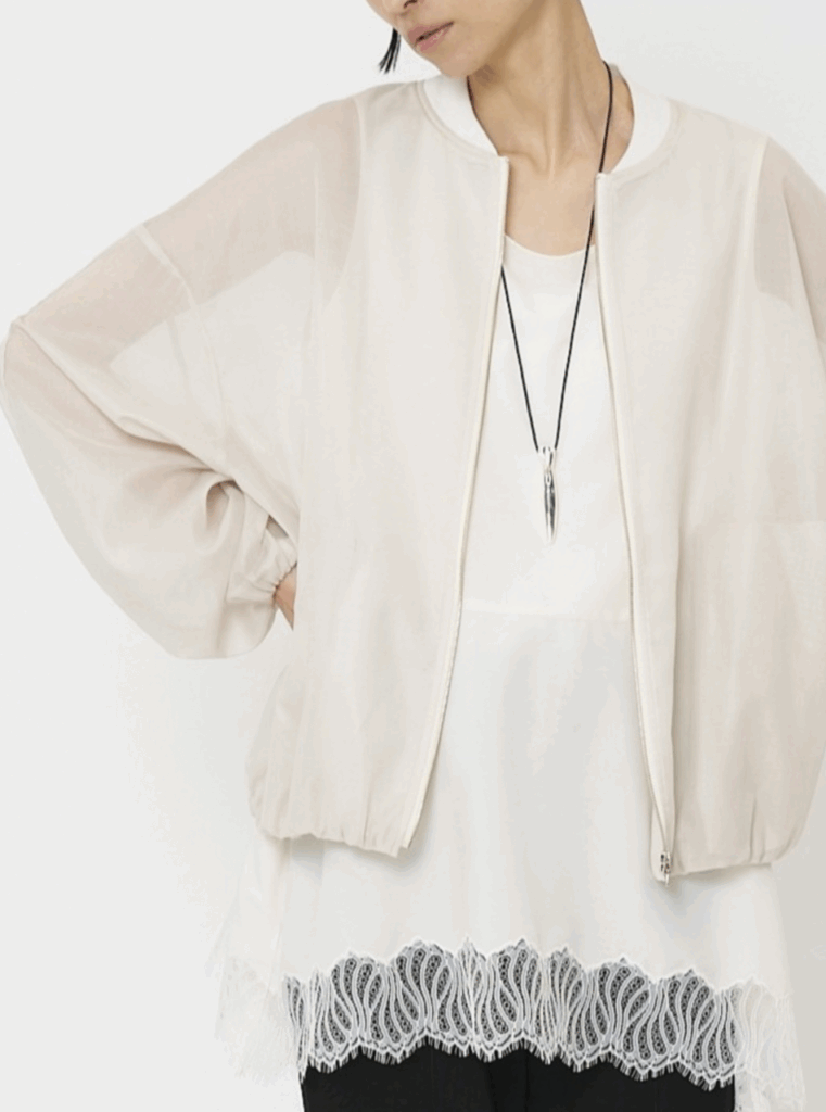 シアー素材なので程よい抜け感もあり、Tシャツやデニムといったカジュアルなアイテムに合わせるだけで、