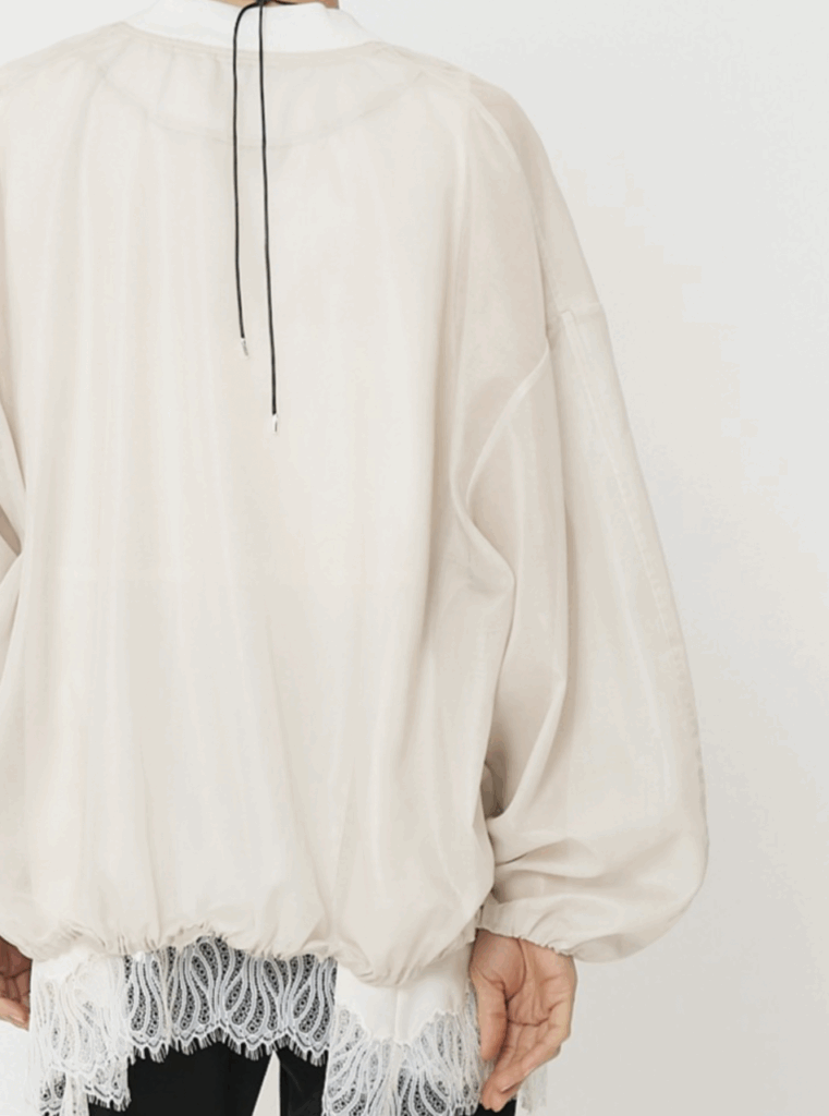 オーガンジー特有の繊細な透け感に光沢加工を施した、上品なツヤ感を持つ素材を使用しました。