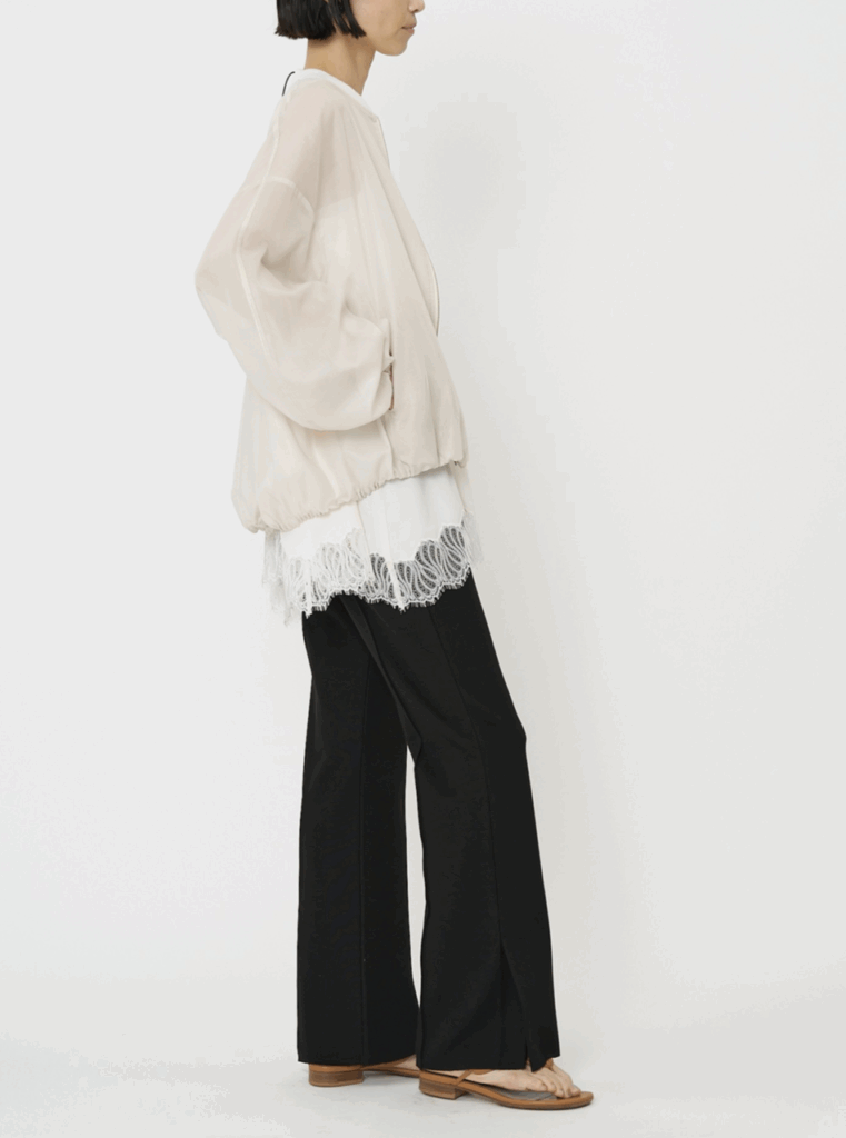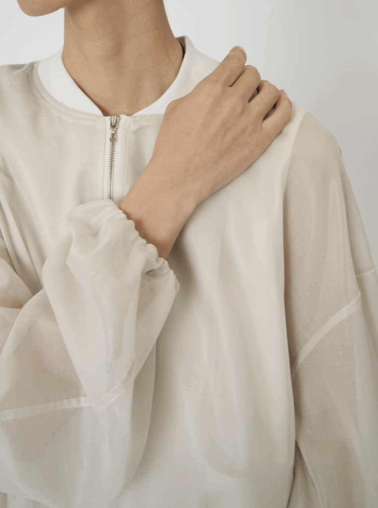 薄手で軽いながらも適度なハリがあるため、ふんわりとした立体的なシルエットをキープし、シワにもなりにくいのが魅力。