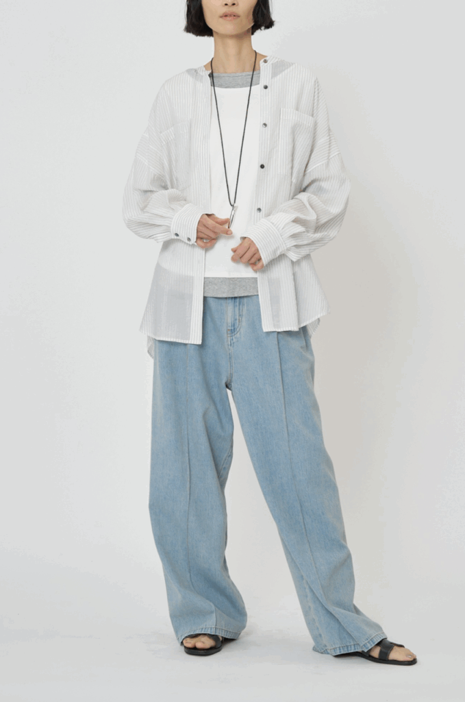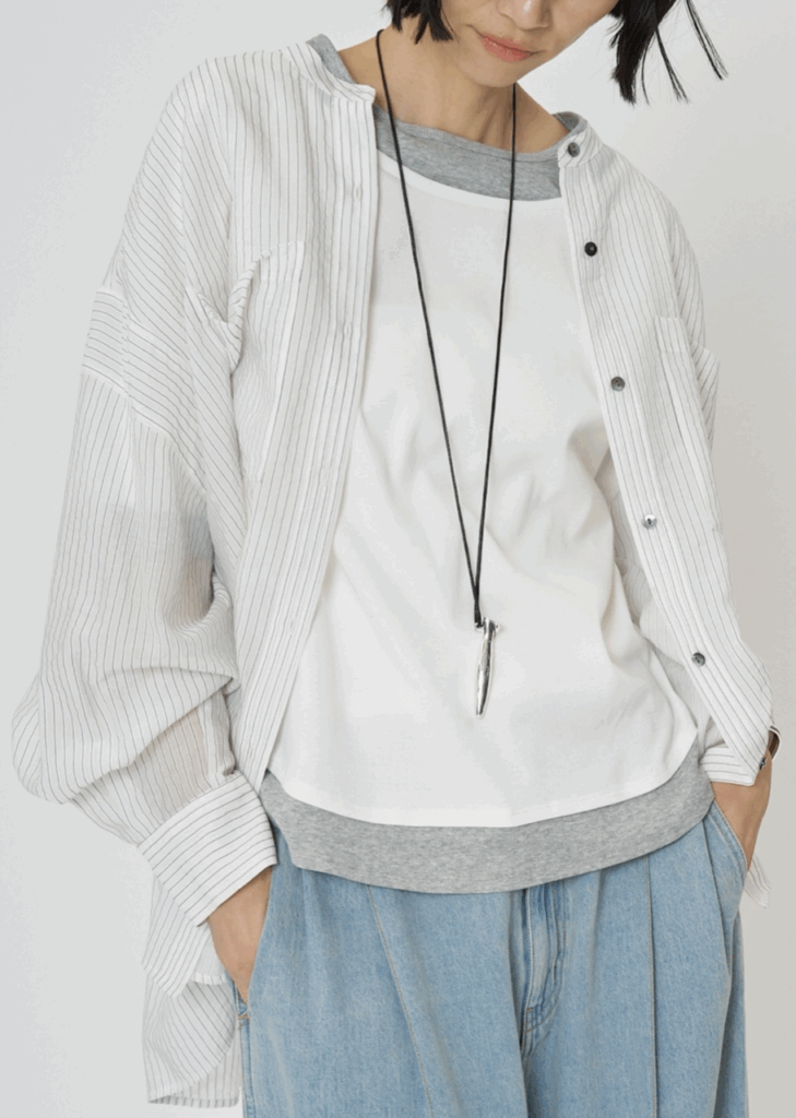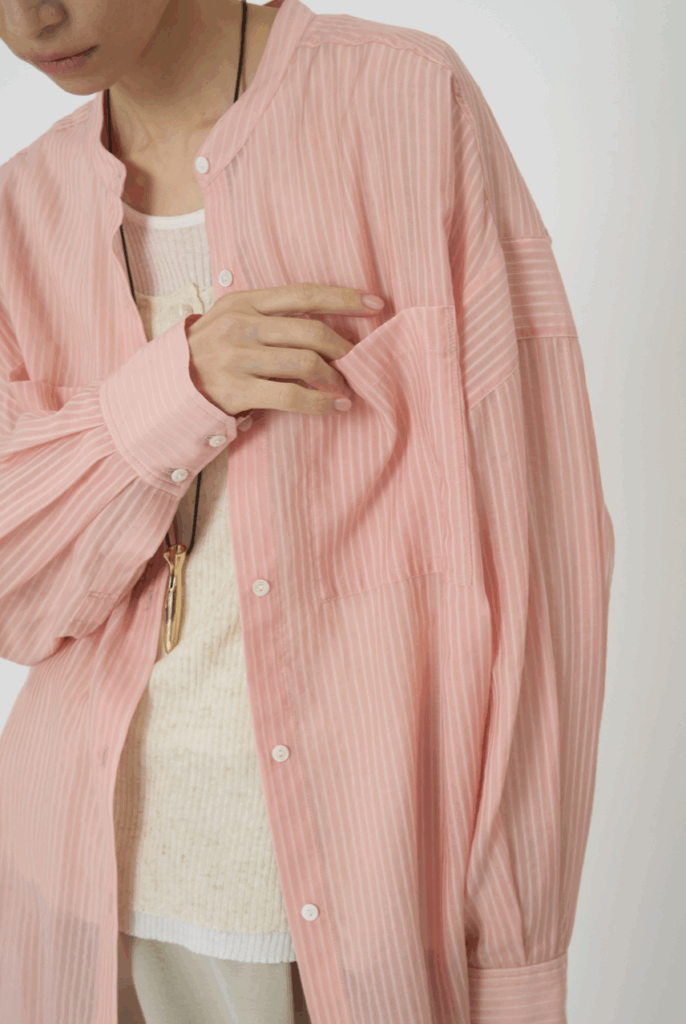 ニットやスウェットの下に重ねてシアー感を楽しんだり、Tシャツやタンクトップの上に軽く羽織って日除け・冷房対策にもでき、長いシーズン活躍するアイテムです。