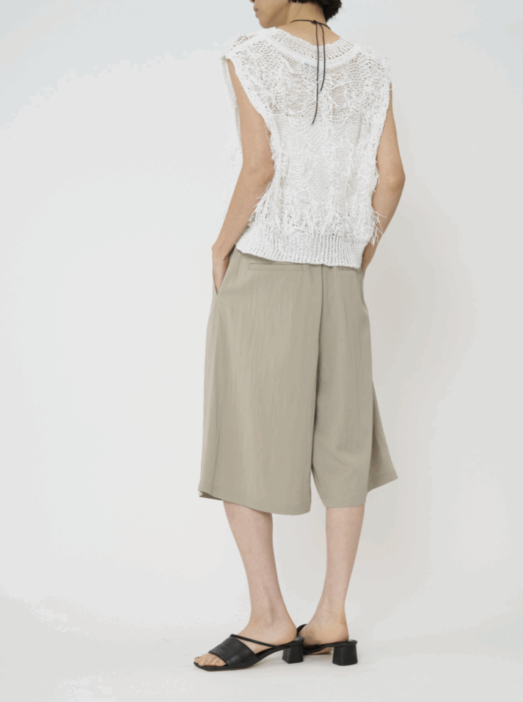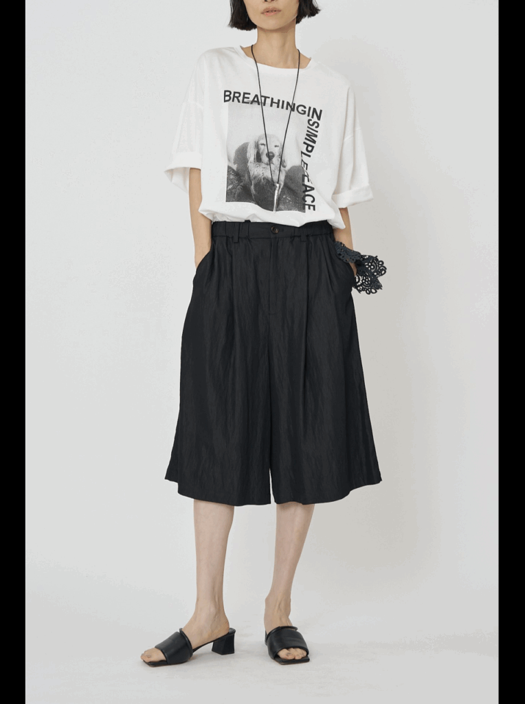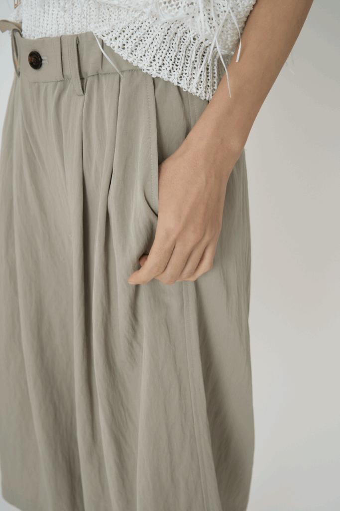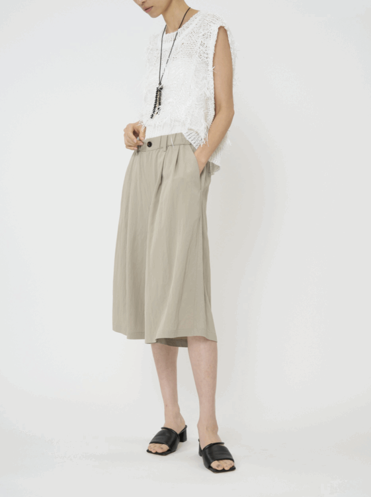 なめらかなとろみ感が心地良いシャンブレーのレーヨンナイロン素材を使用したキュロット。