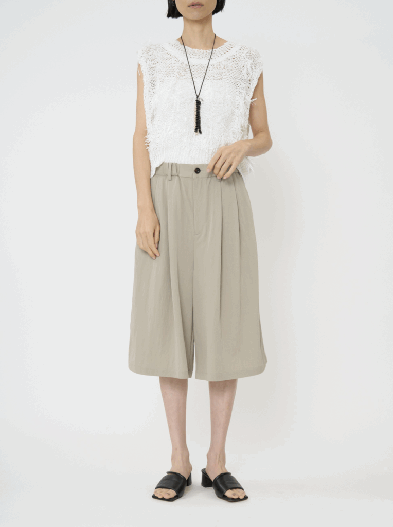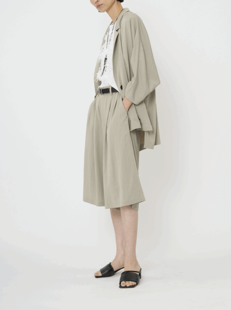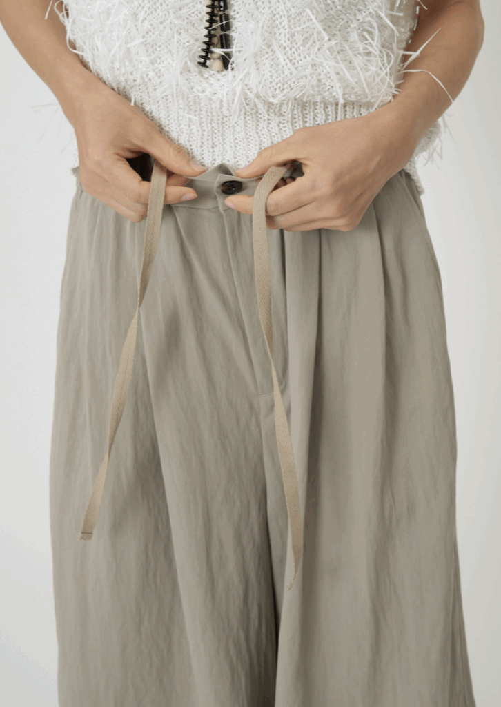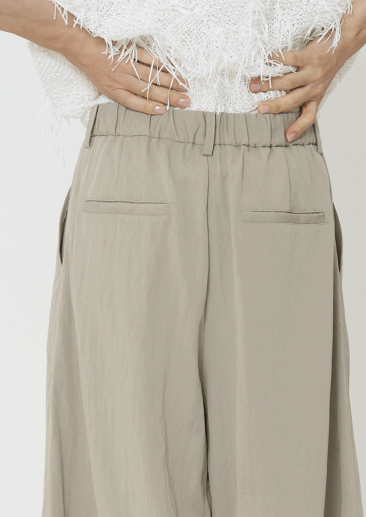 ゆるっとしたリラックスシルエットで、ウエストに2タックをいれることで、腰回りをすっきりと見せてくれます。