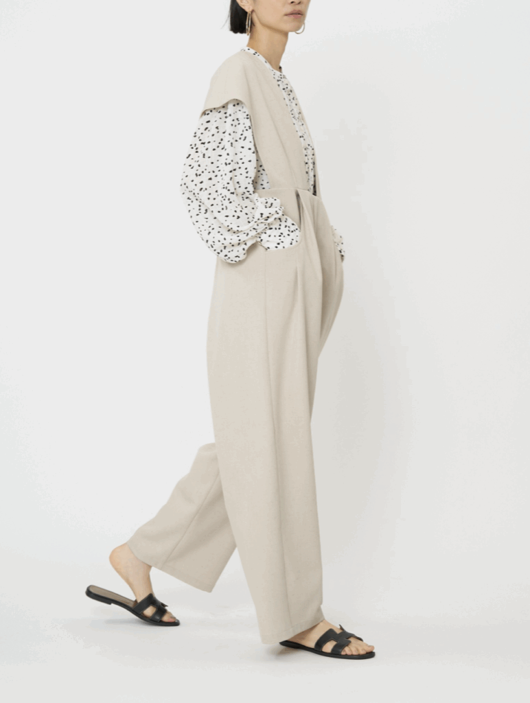 1枚着用するだけで、シンプルな着こなしを一気にクラスアップさせて見える、リラックス感ときちんと感を兼ね備えた、大人のコンビネゾンです。