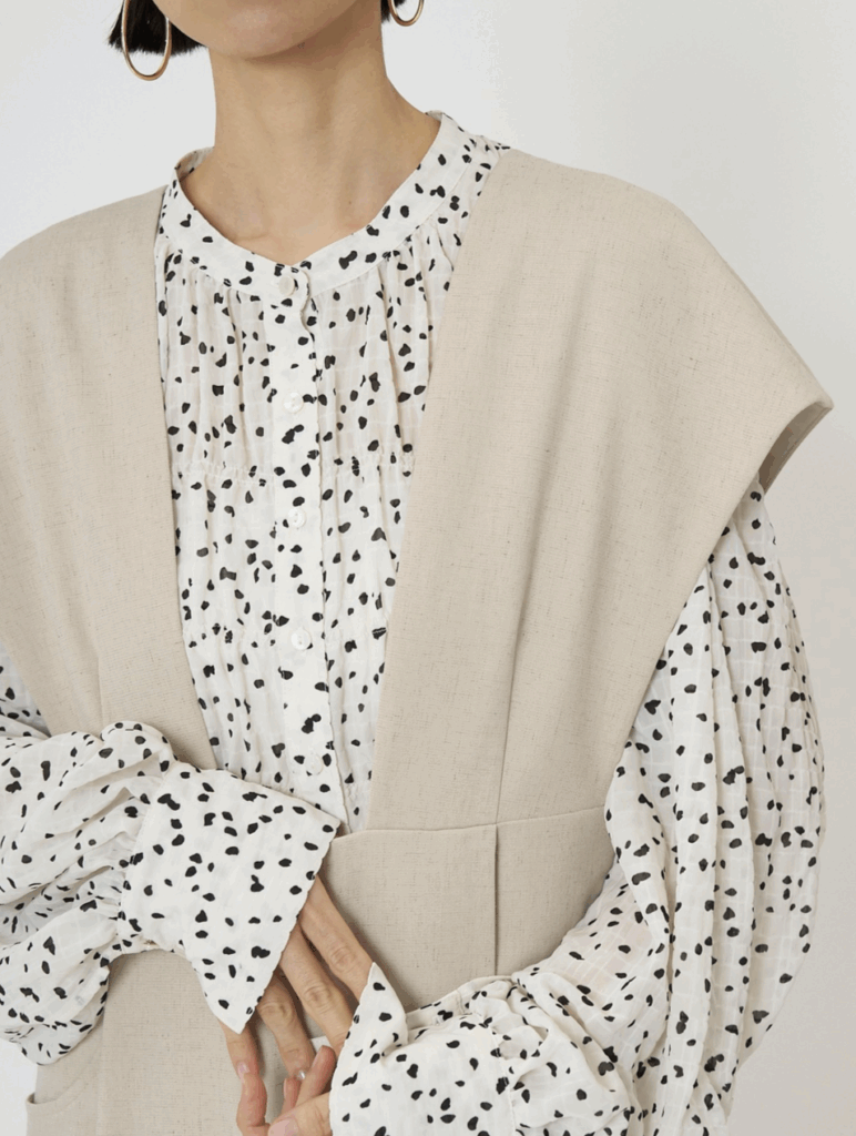 天然素材のようなナチュラルな表情でリラックス感を保ちながらも、シワになりにくいしっかりとした質感が上品な1枚です。