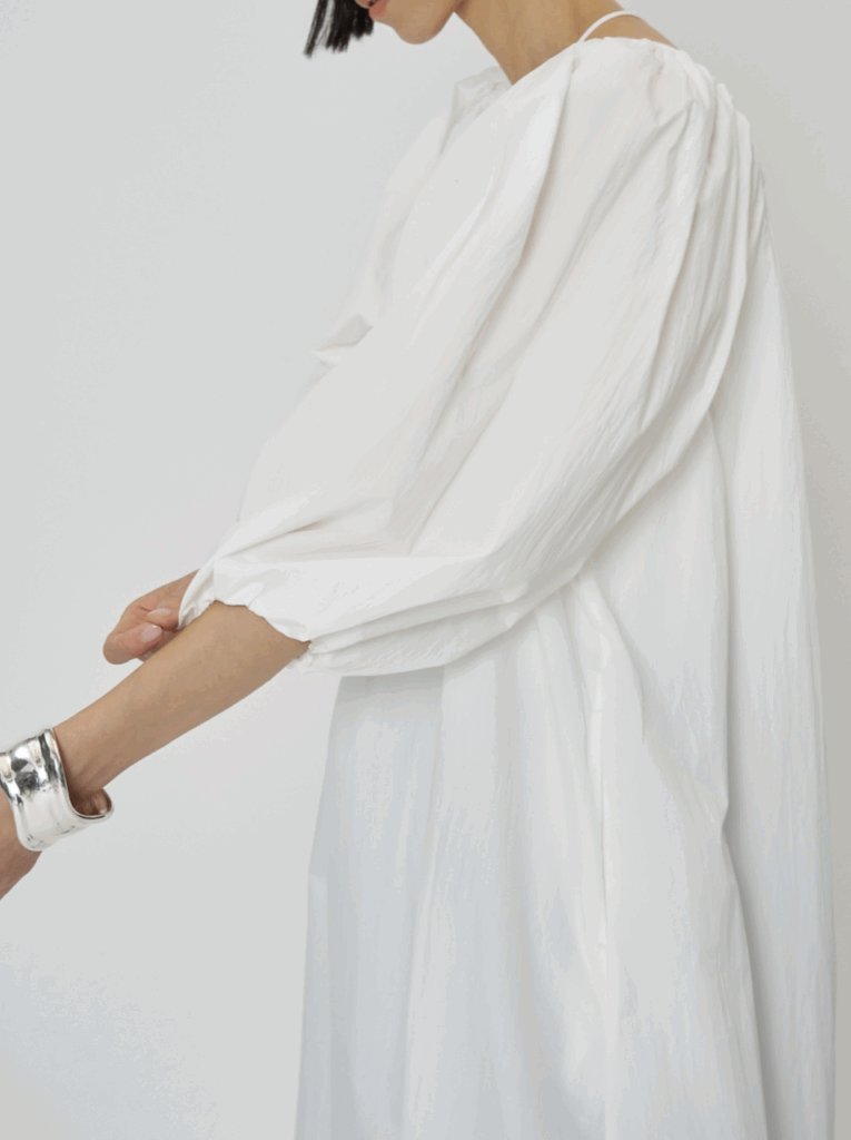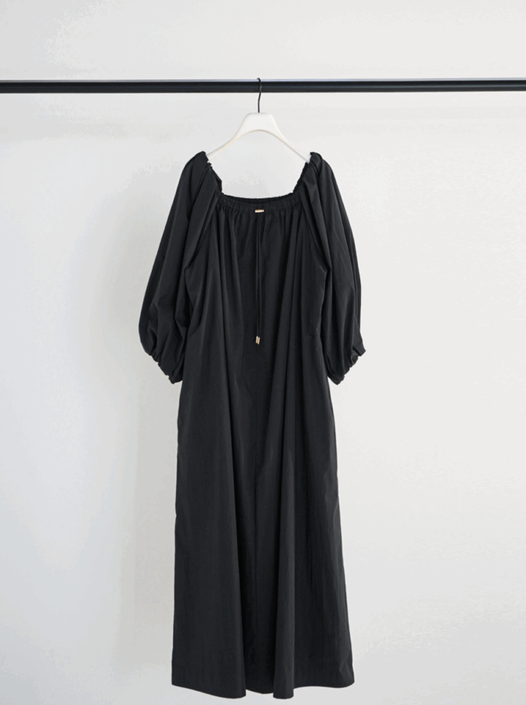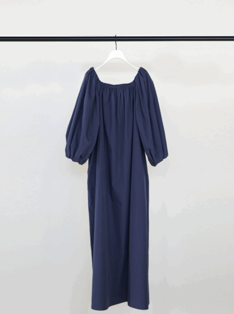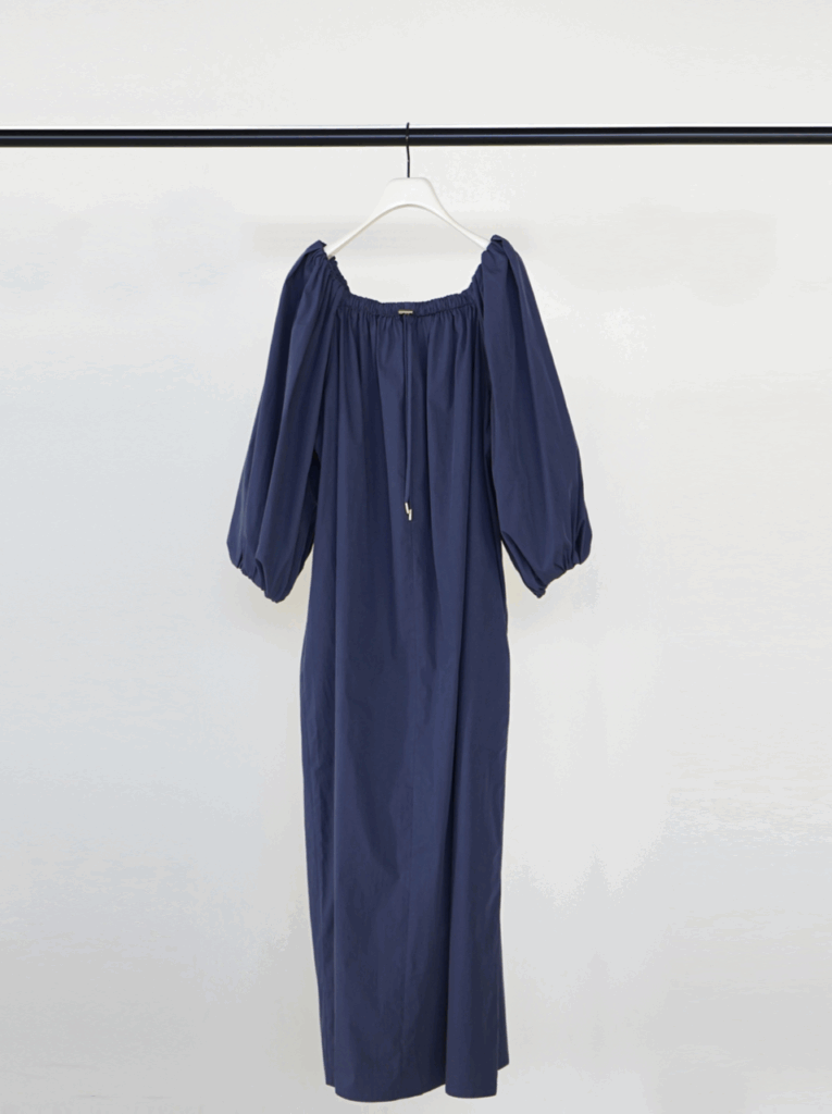 広く開いた衿ぐりがデコルテをすっきりと見せてくれる、リラクシーな大人ワンピース。