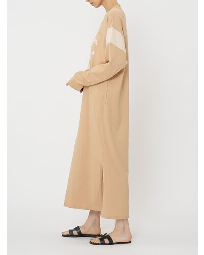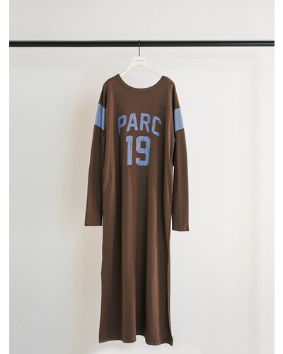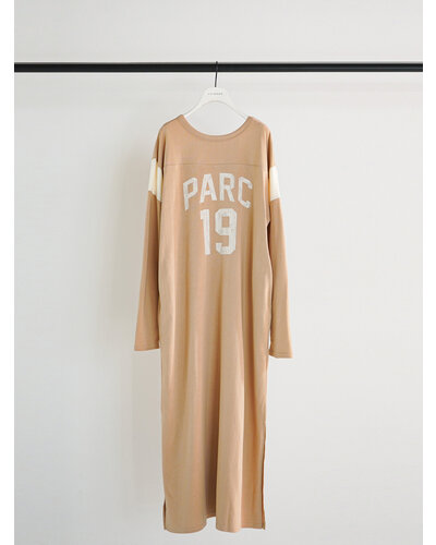 大胆なナンバープリントが目を惹くカジュアルムードなロゴワンピース。程よくゆとりのあるストレートシルエットでラフさの中にも女性らしい抜け感を演出してくれます。