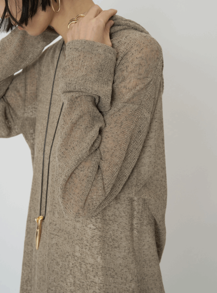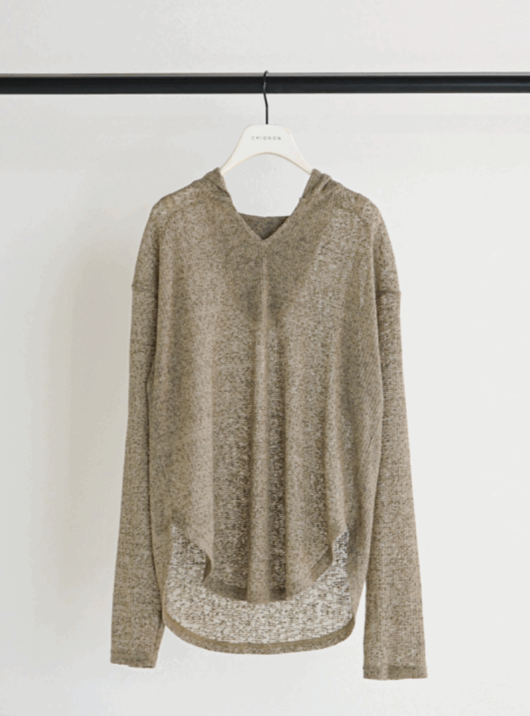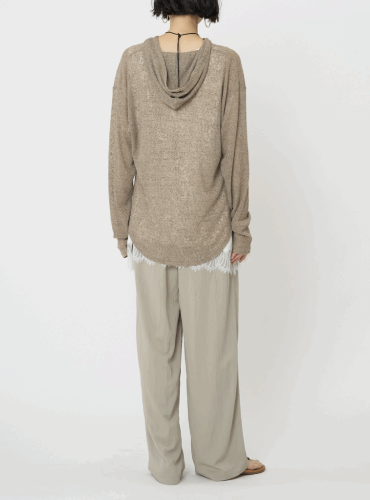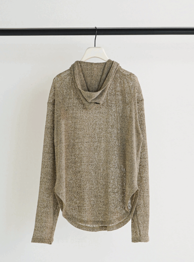 定番のフーディを、少しシアー感のある麻ブレンドのニットソー素材で。
