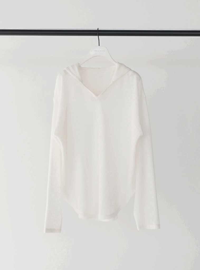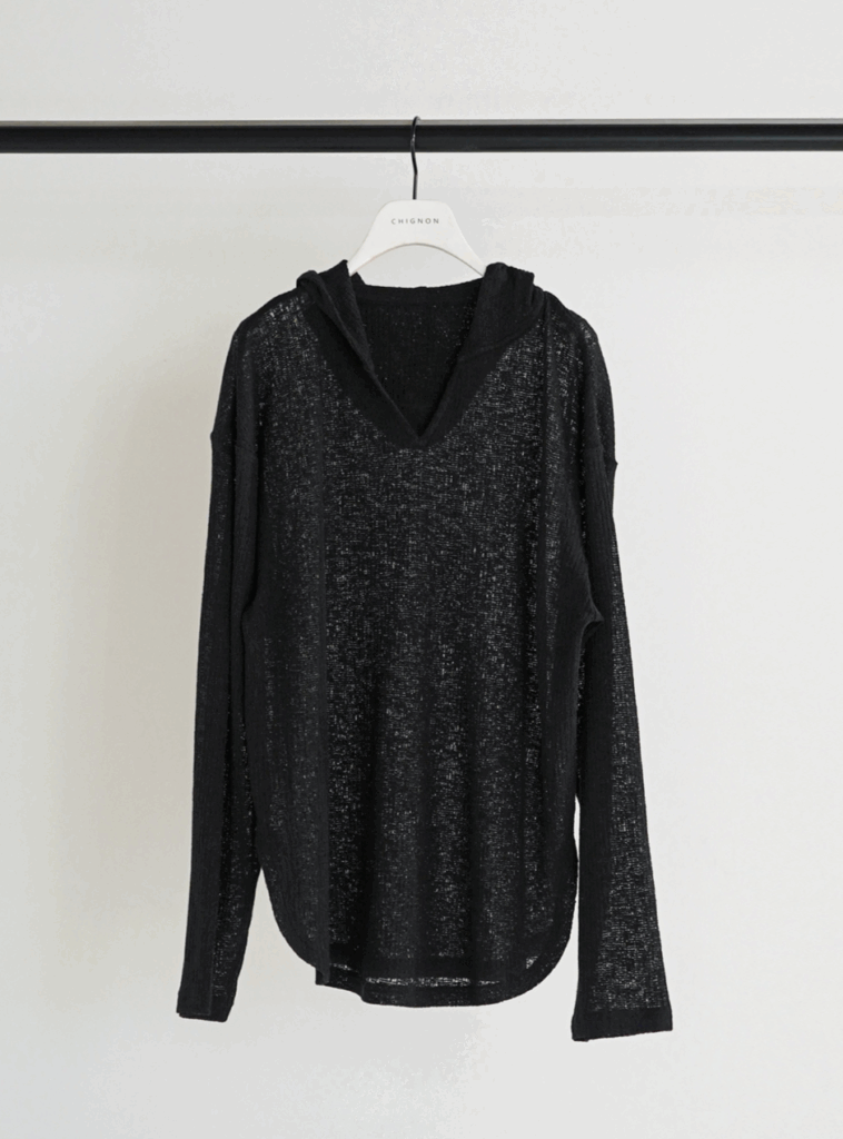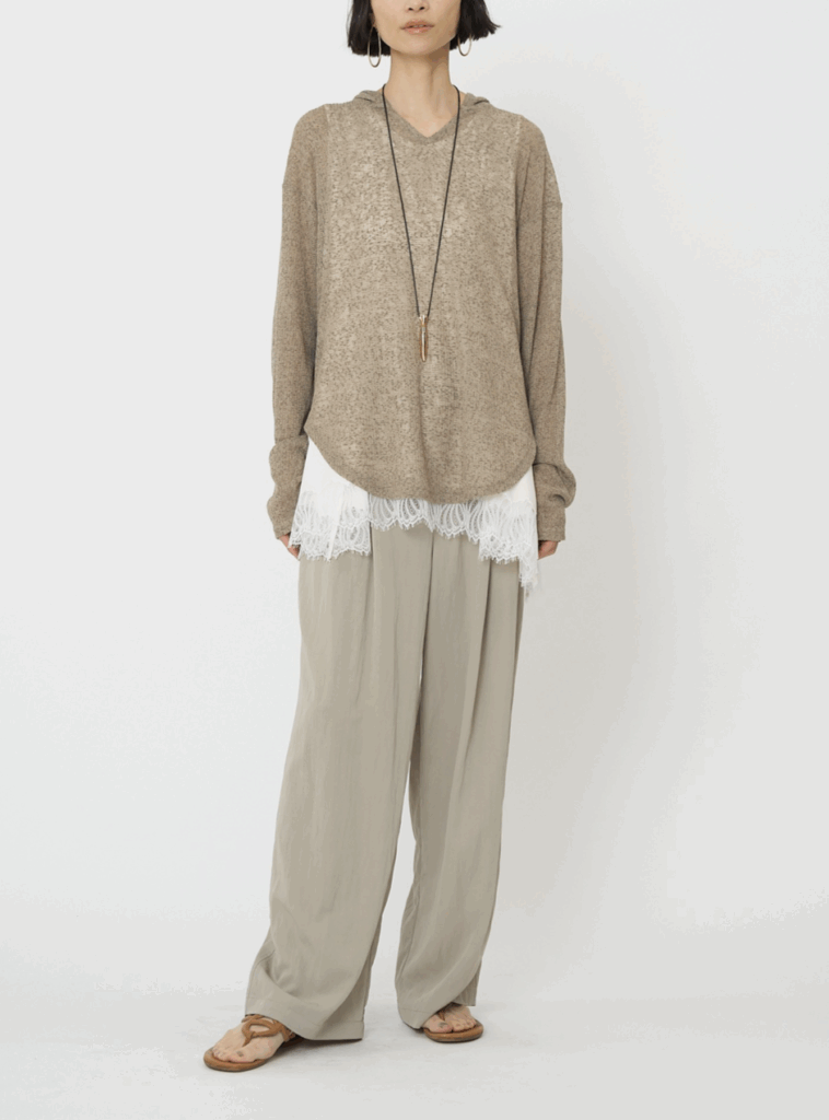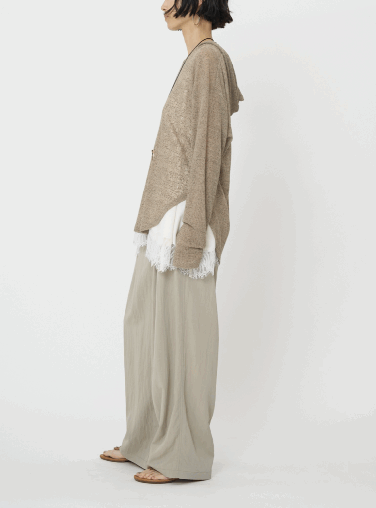 定番のフーディを、少しシアー感のある麻ブレンドのニットソー素材で。