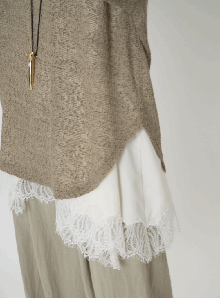 さらっとした快適な肌触りに加え、前襟ぐりに入れたスリットが女性らしい華奢な印象を引き立てます。