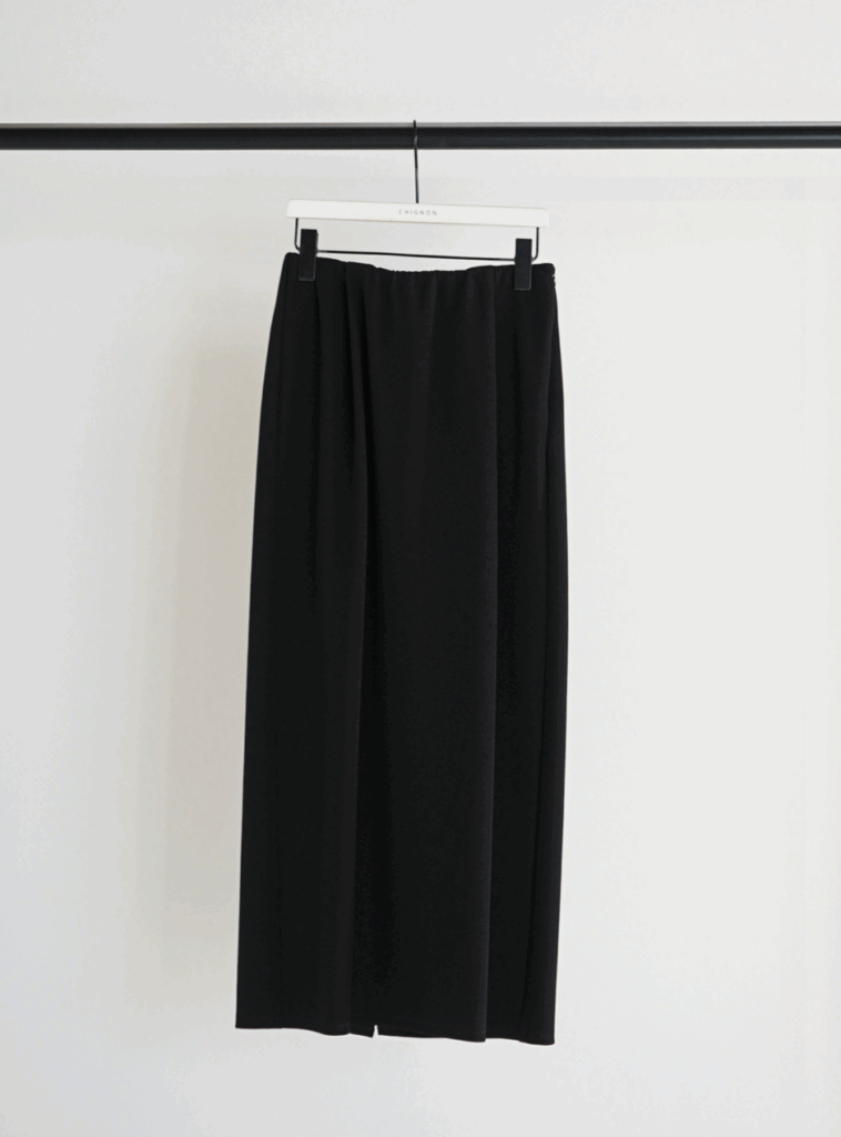 スタイルアップ効果を最大限に引き出すナローシルエットで、ウエスト部分にタックをいれ、気になるお腹周りもカバー。