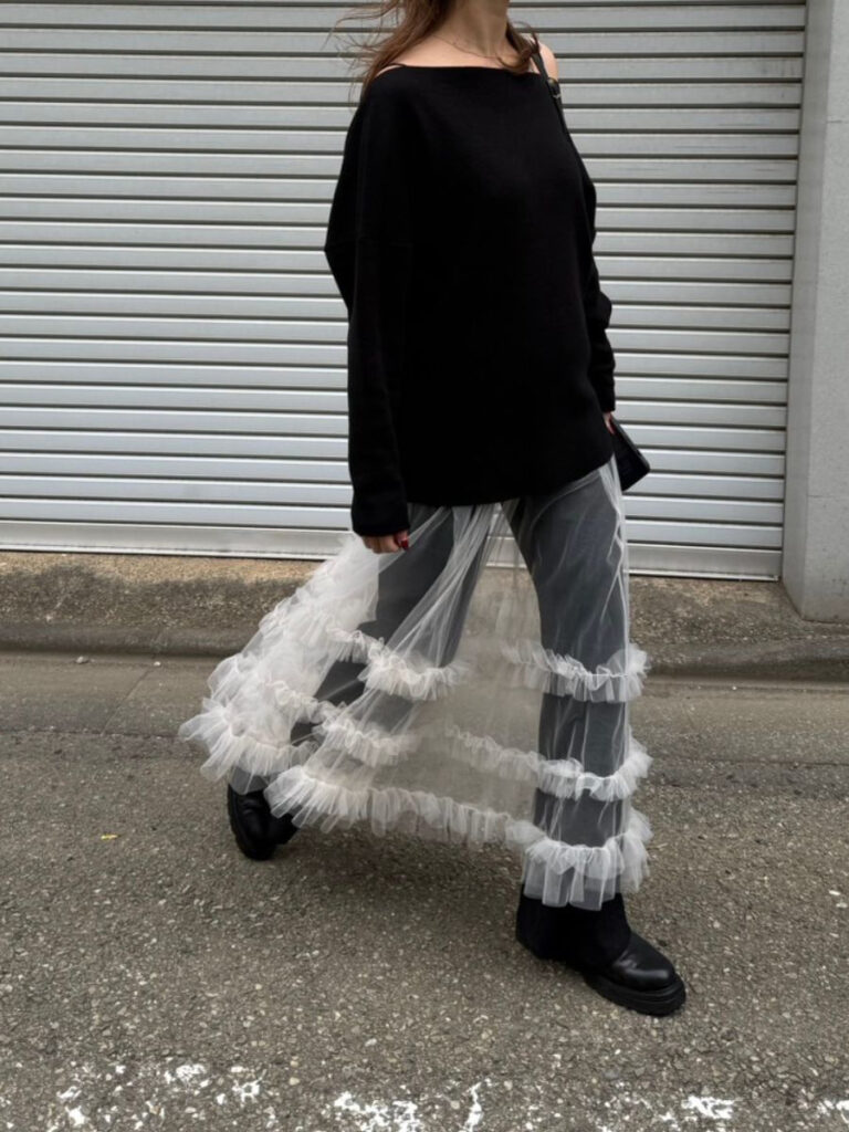 ペチコート付きだからスカートとしてはもちろん、パンツに重ねて“レイヤード”を楽しむのもおすすめ。