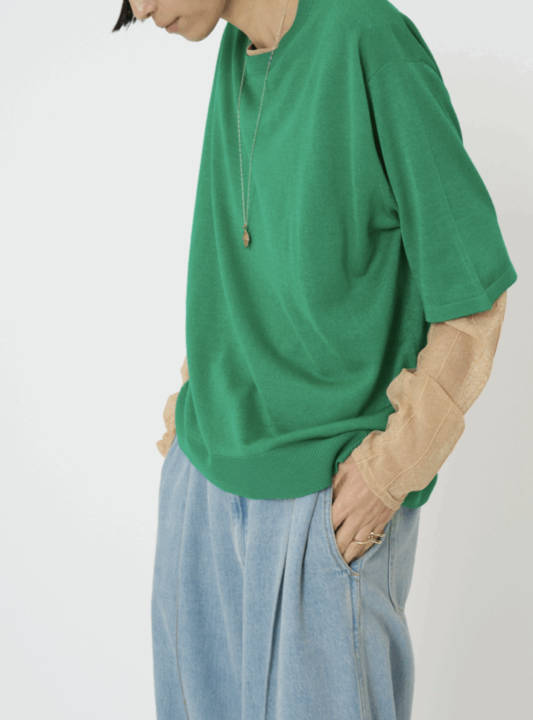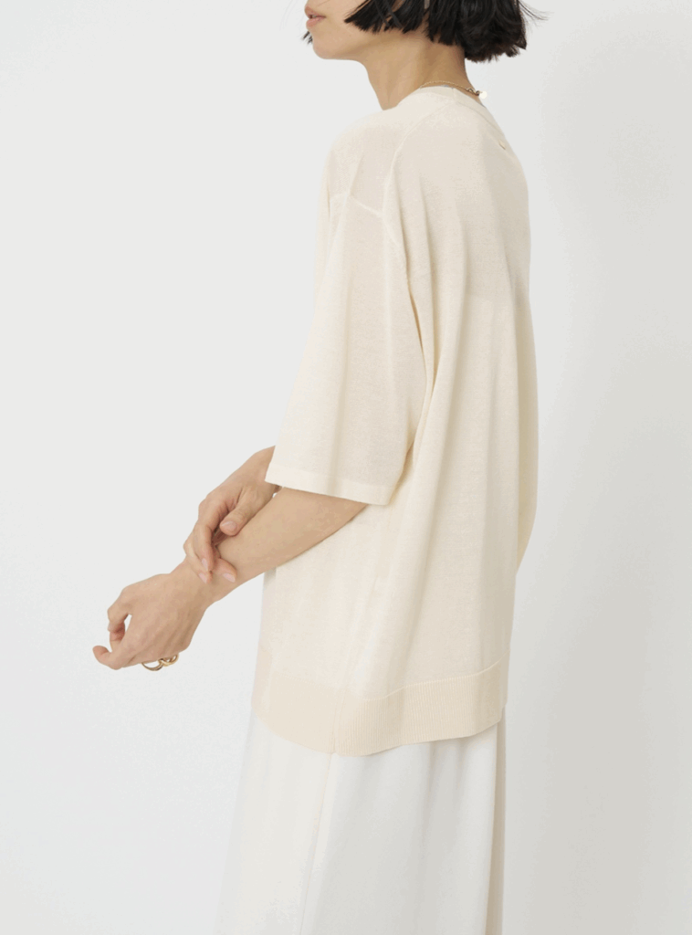 ハイゲージで繊細に編み立てた、大人カジュアルスタイルにフィットするニットTシャツです。