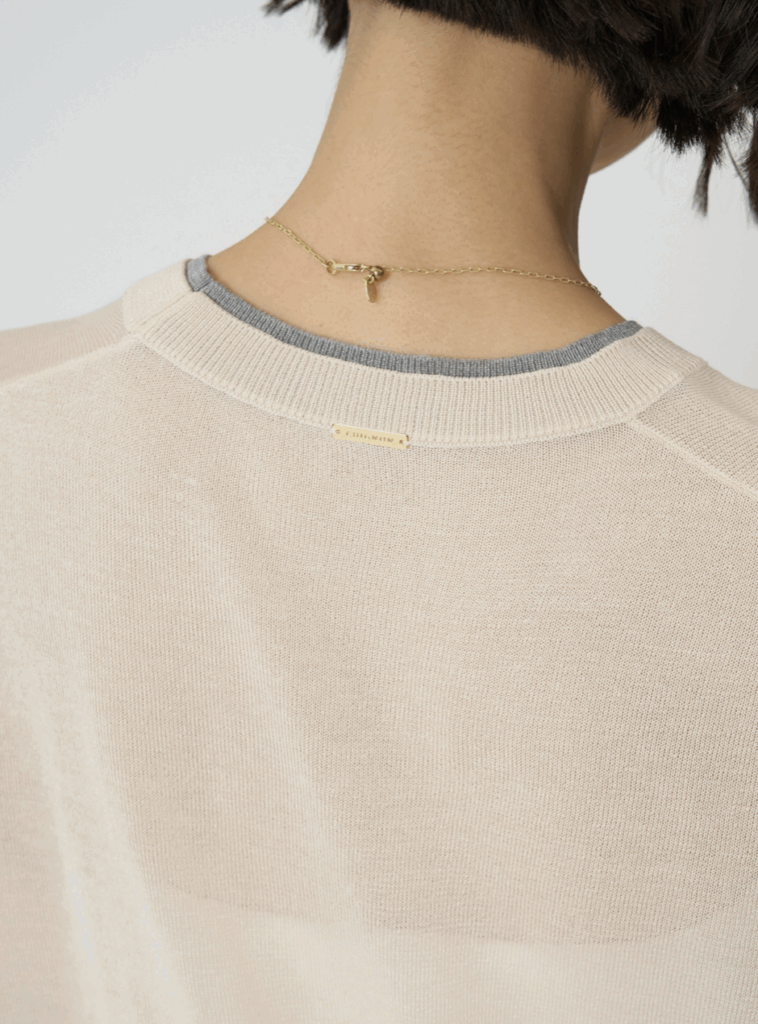衿ぐりには配色リブを重ねてCHIGNONらしい遊び心を。