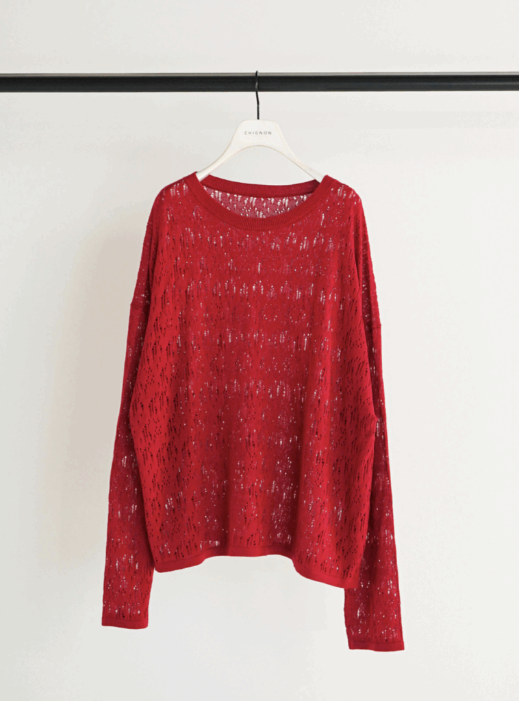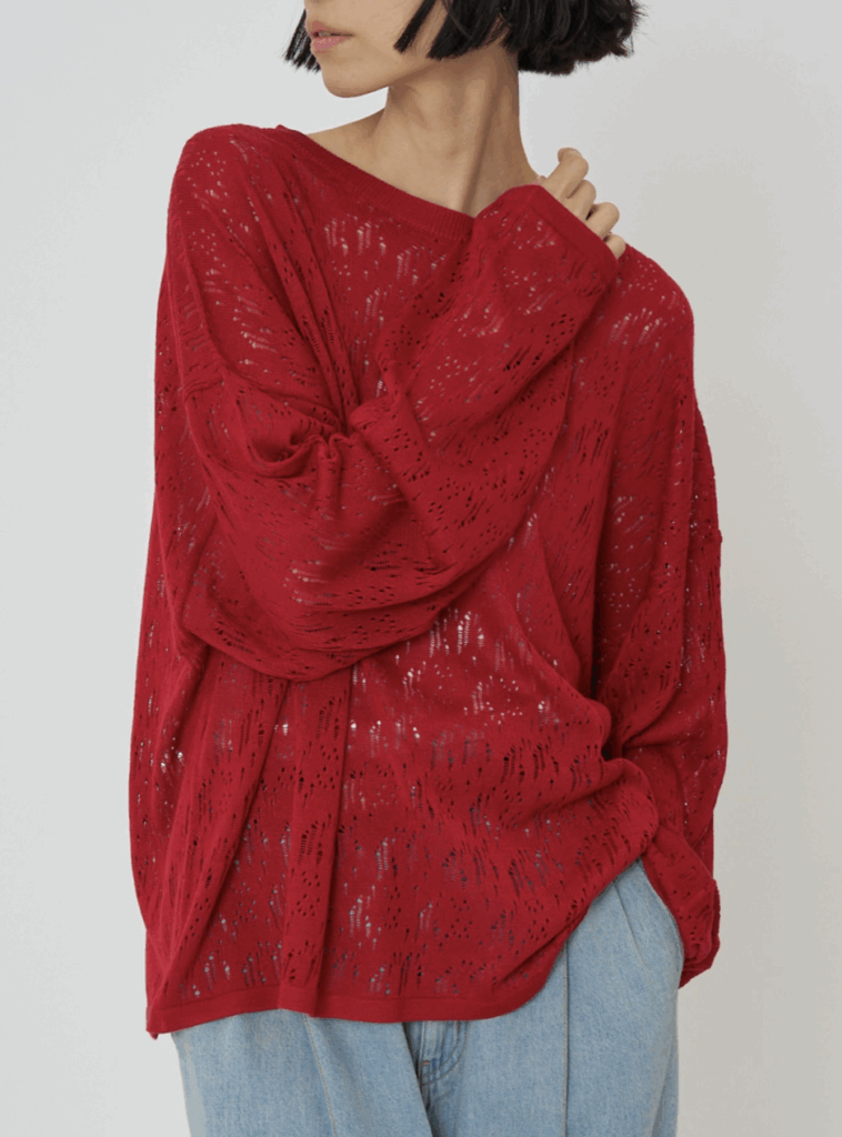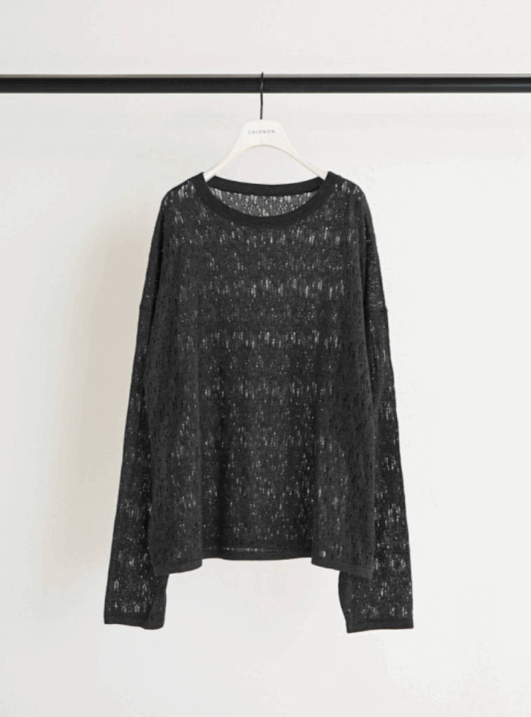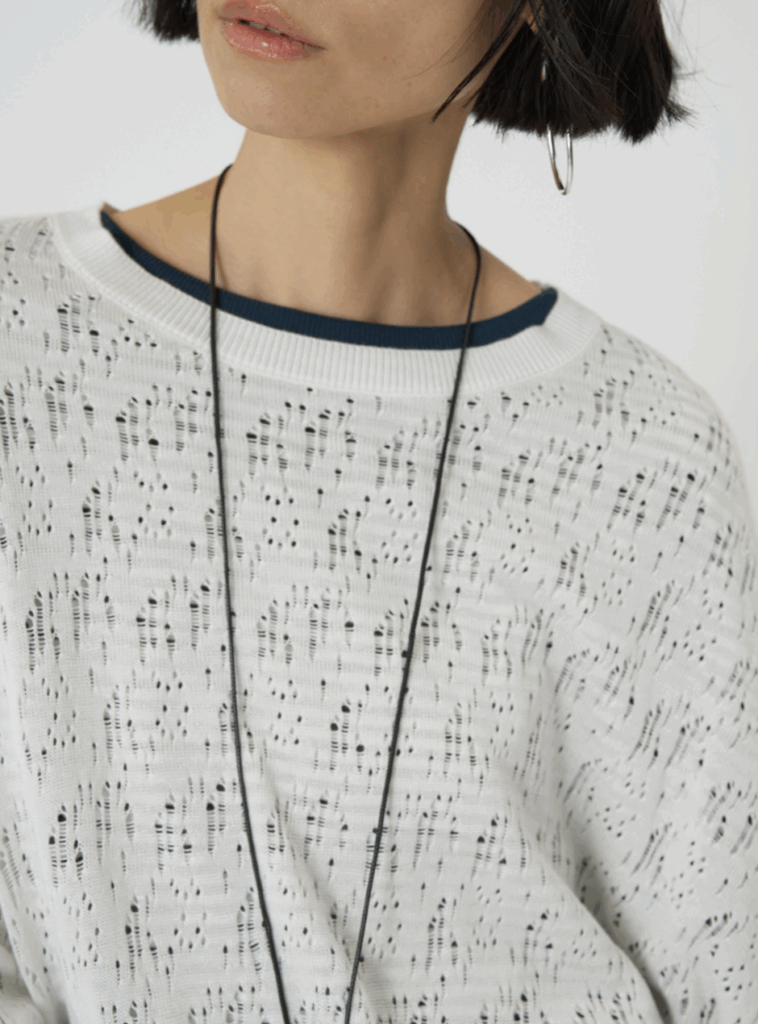 目を落としてドット柄を変形させて作ったスカシ柄ニットプルオーバー。