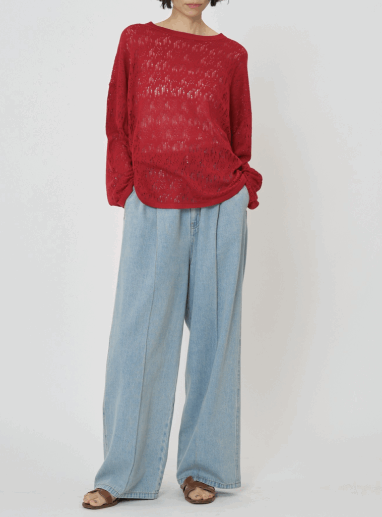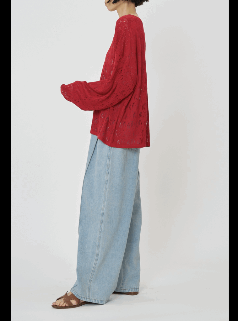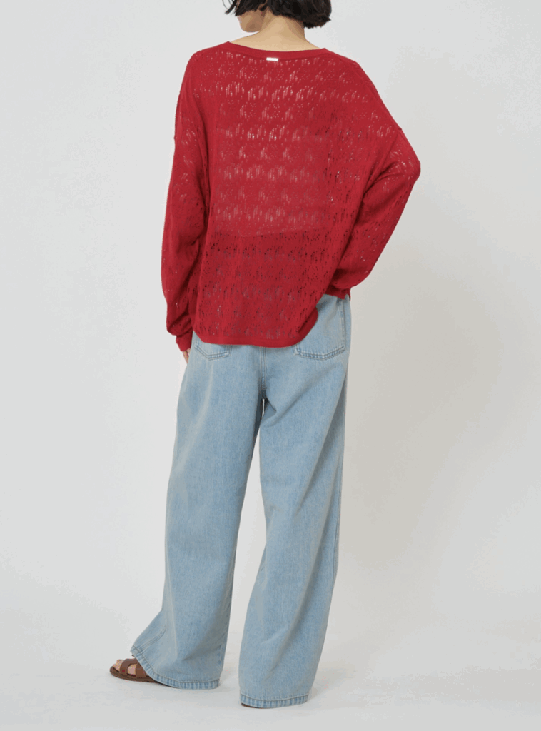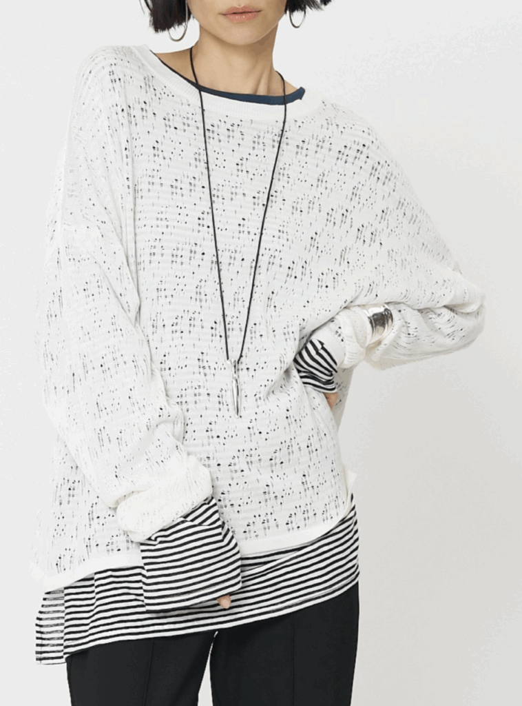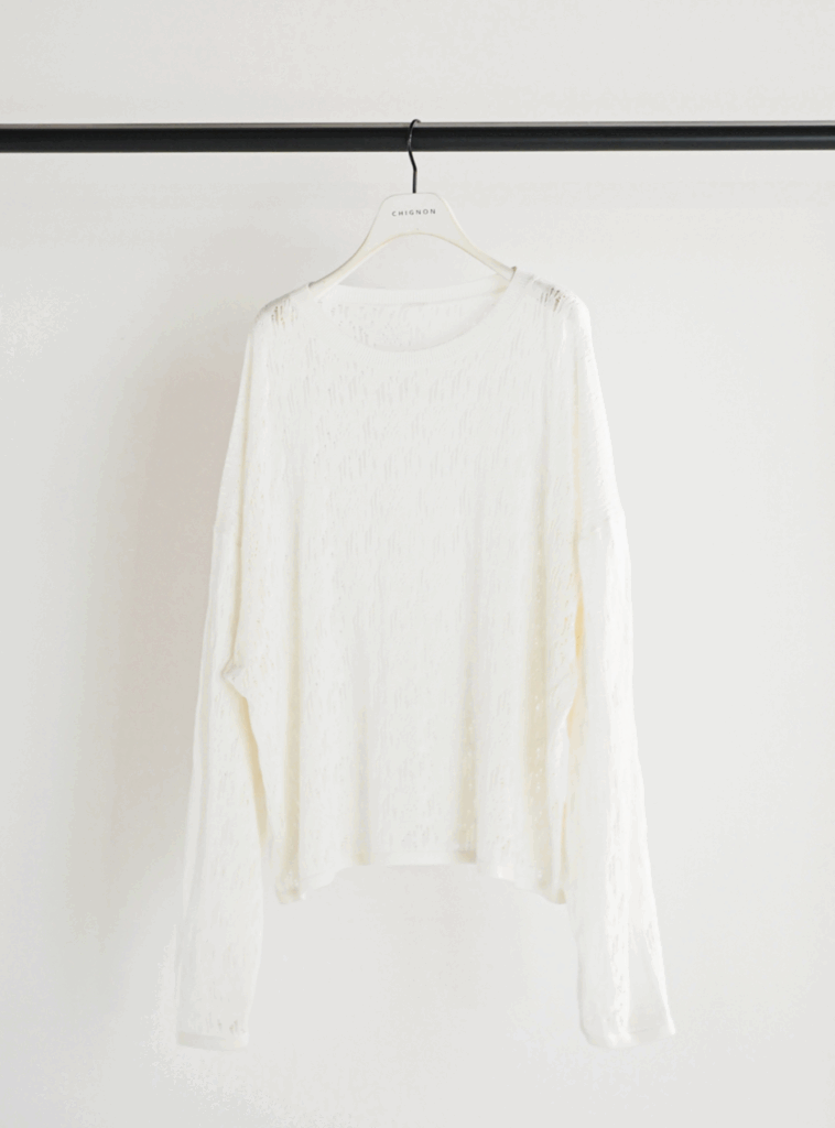 目を落としてドット柄を変形させて作ったスカシ柄ニットプルオーバー。