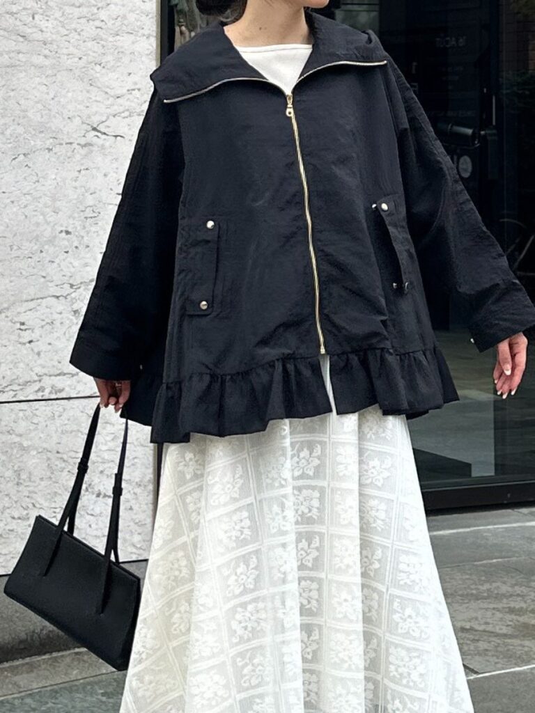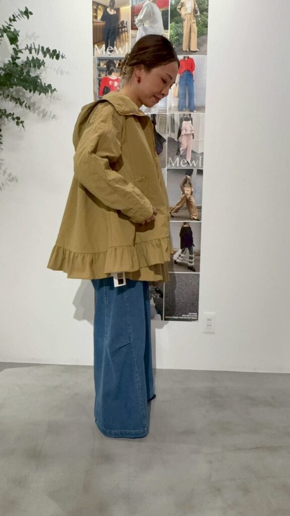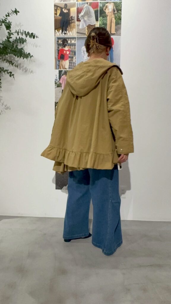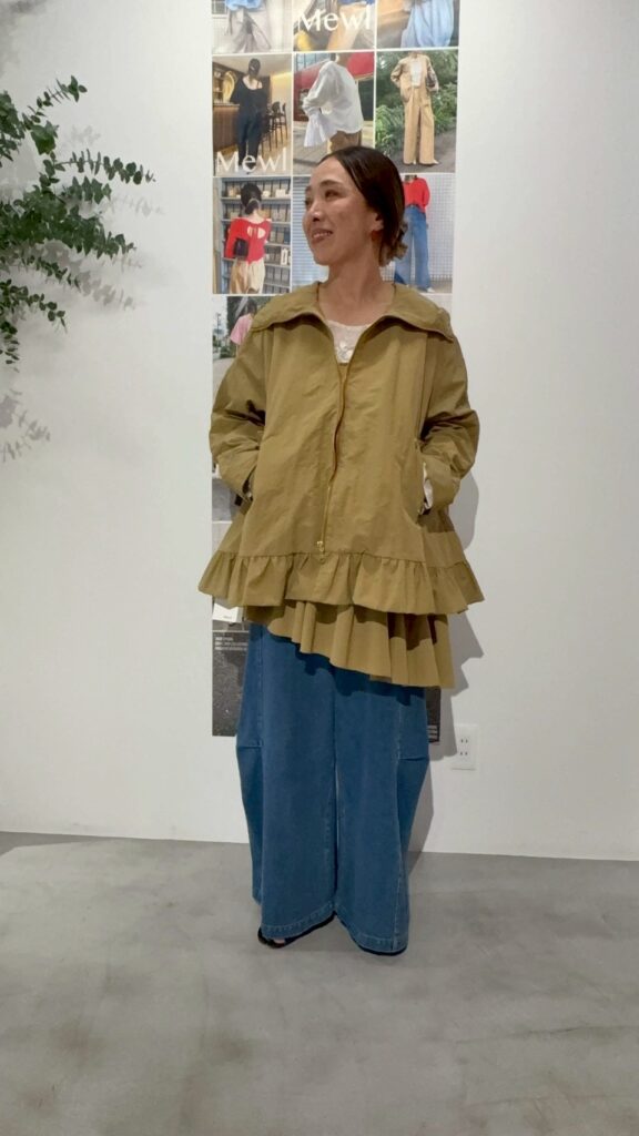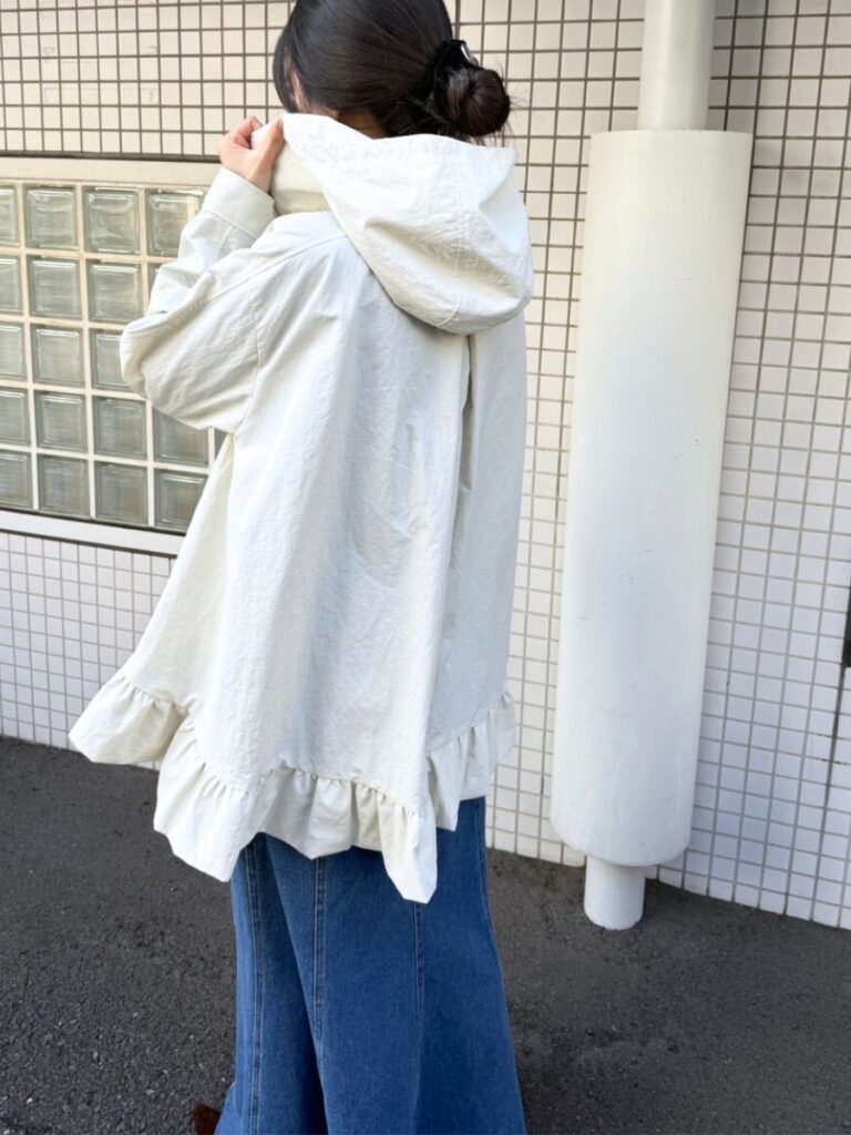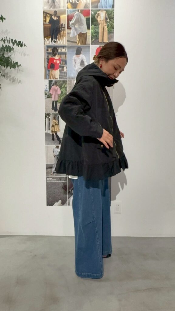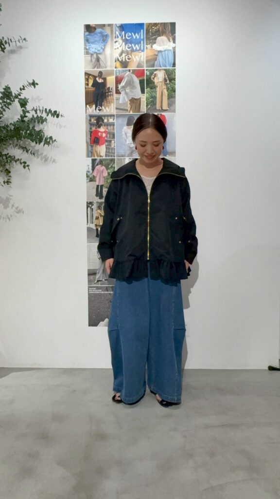 春アウターの定番、マウンテンパーカーをMewlらしくフェミニンにアップデート。