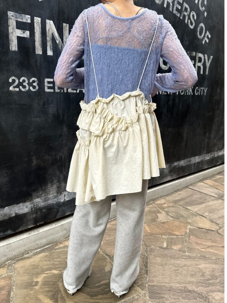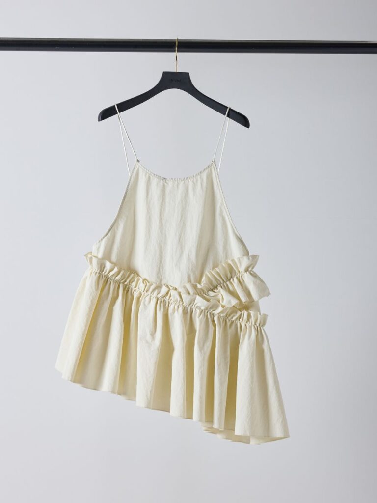「甘さ×スポーティー。大人の遊び心をくすぐるアシメティアードキャミ」