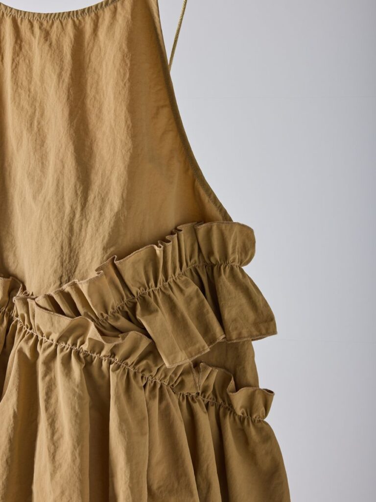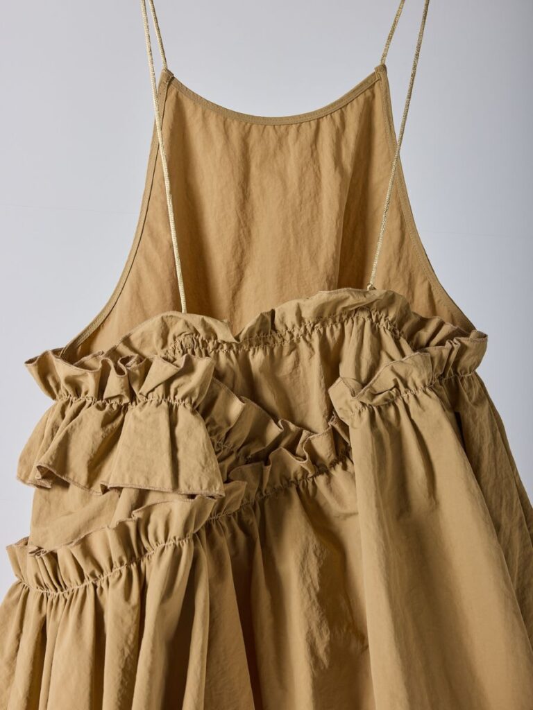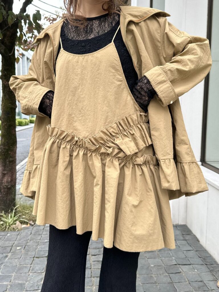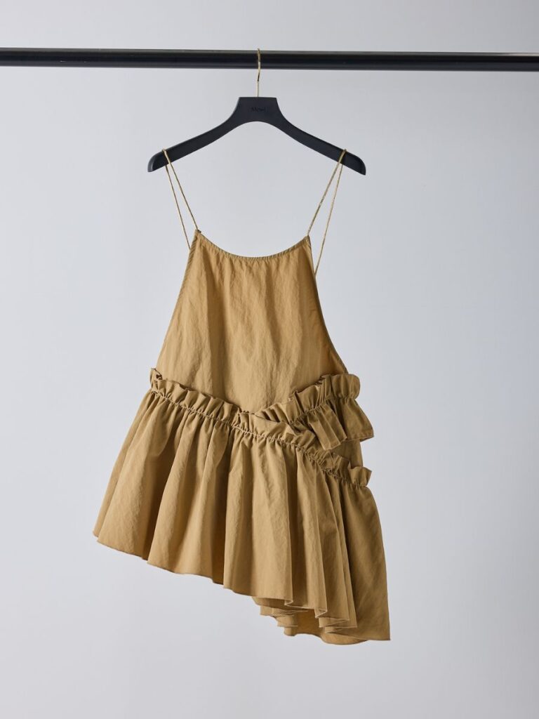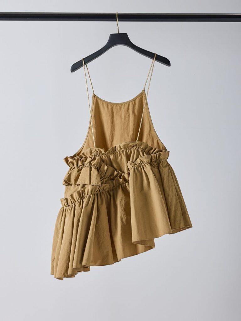 マウンテンパーカーと同素材のナイロン生地で仕立てた、軽やかでモードなキャミソール。