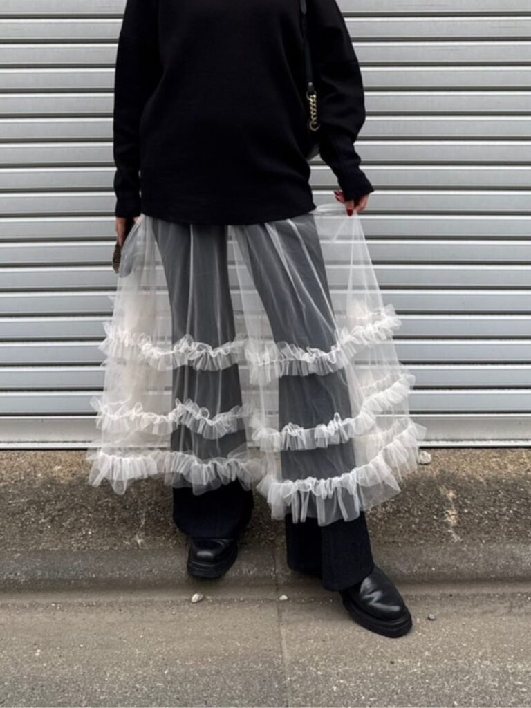チュニックブラウスと合わせて大人カジュアルに、チュールスカートのレイヤードでモードに――