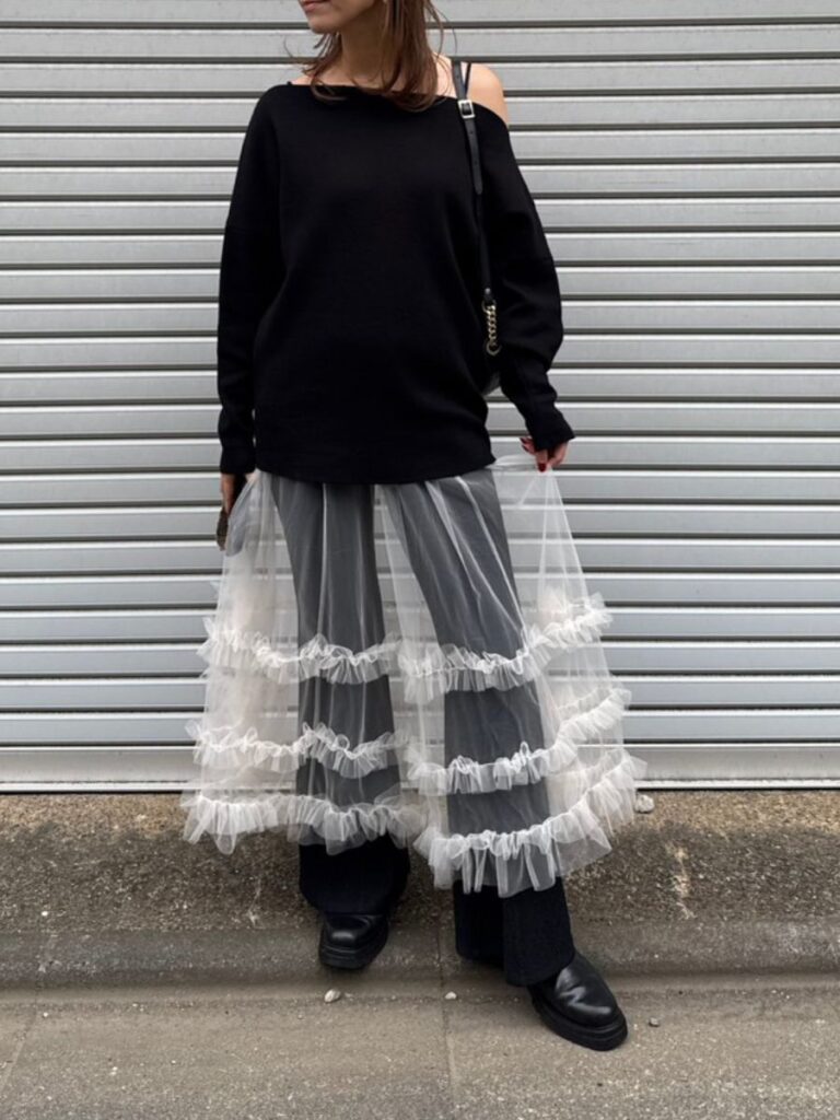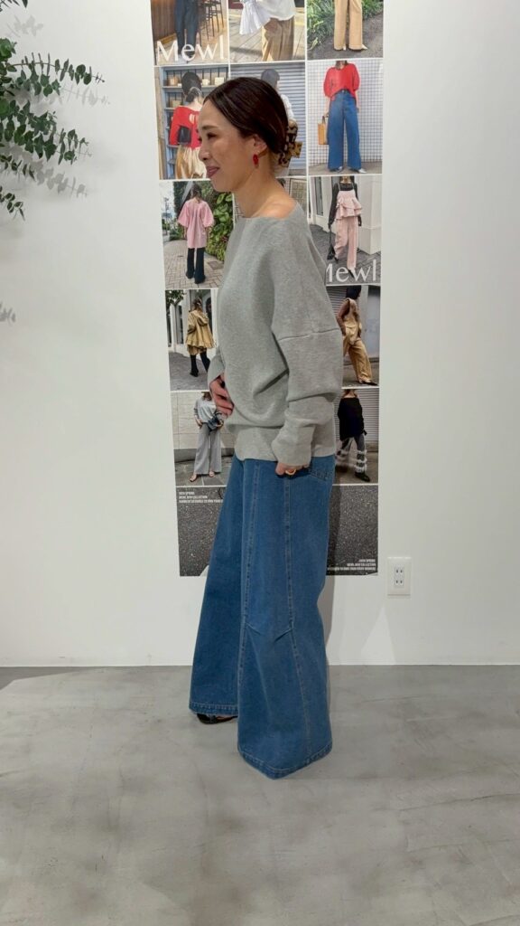 ゆったりしながらも全体はコンパクトに見える絶妙なシルエットで、抜け感と女性らしさを両立。