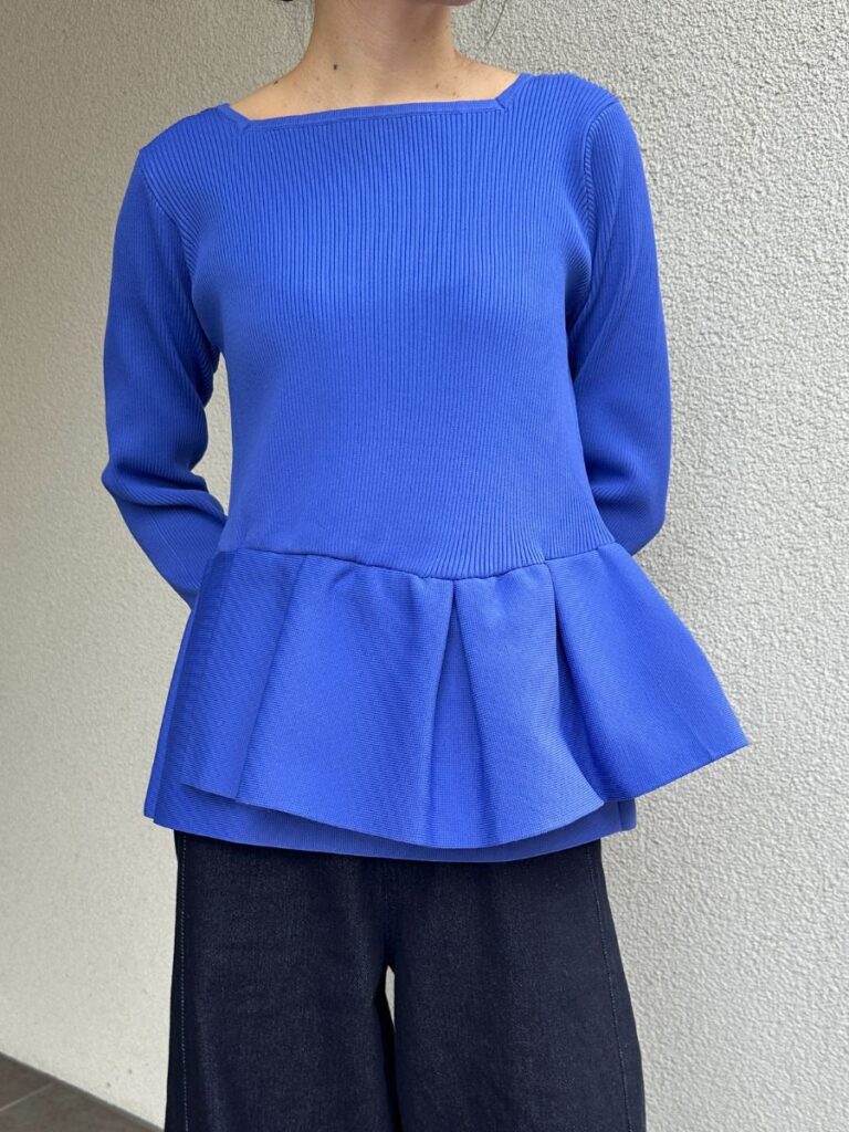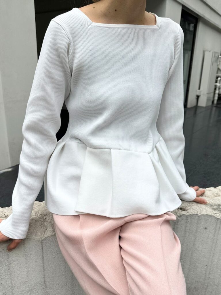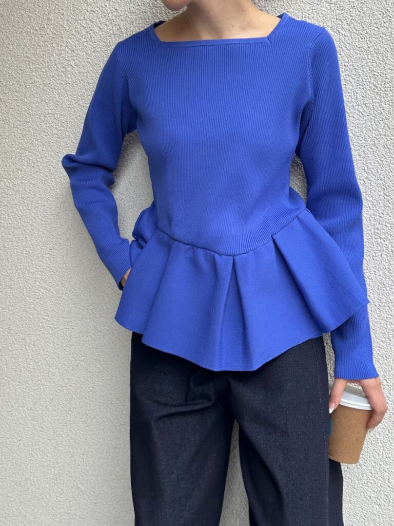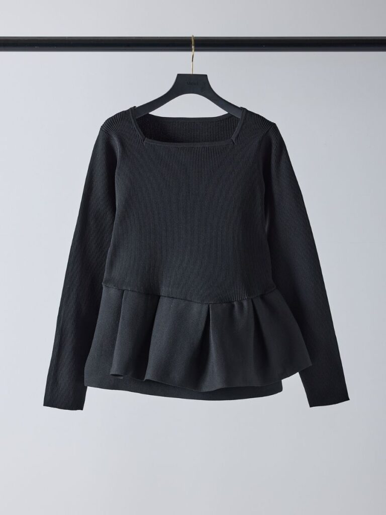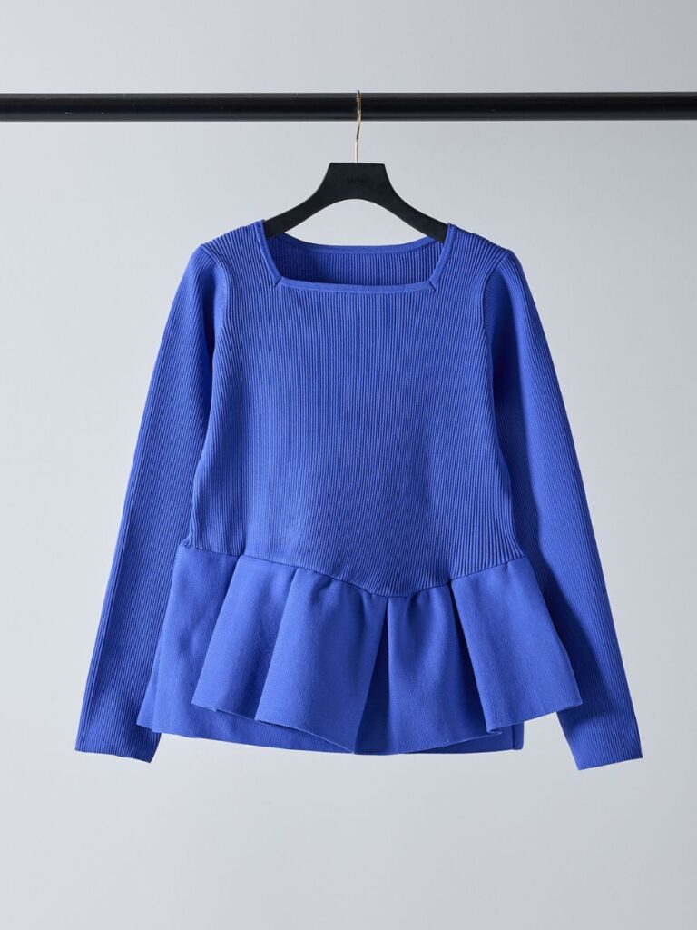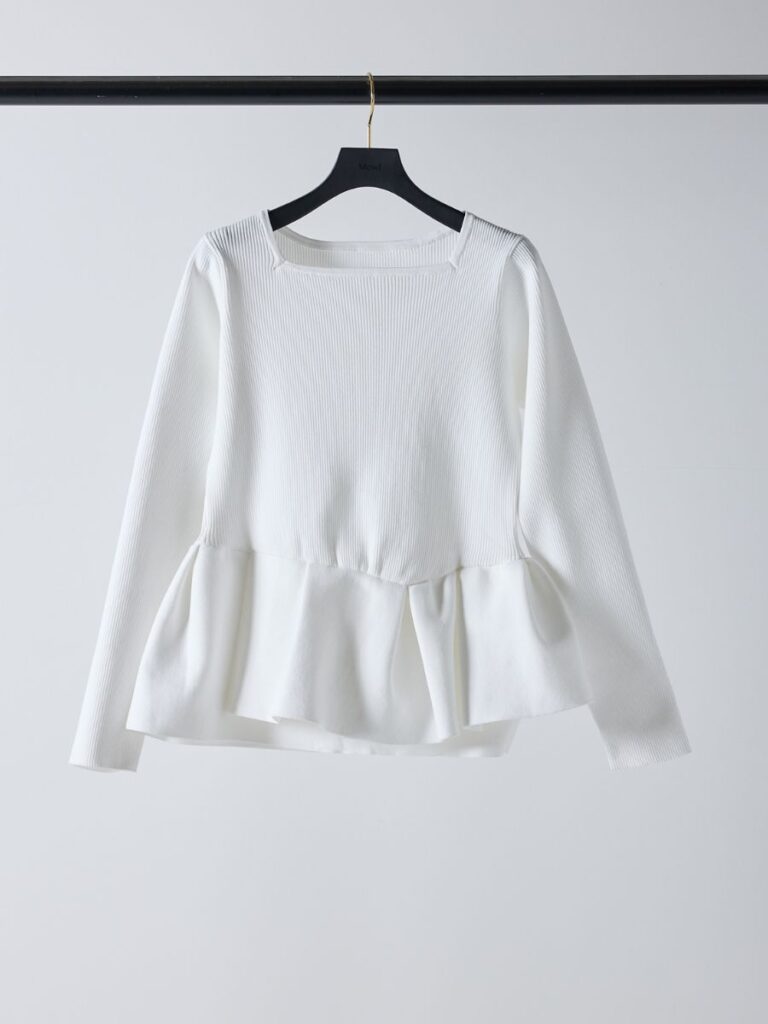 ふんわりと広がるペプラムシルエットが美しい、主役級のニットトップス。
