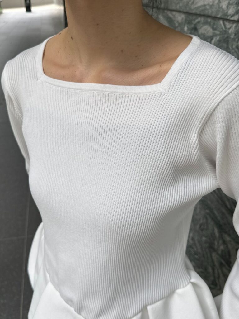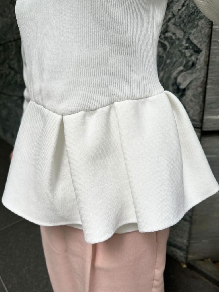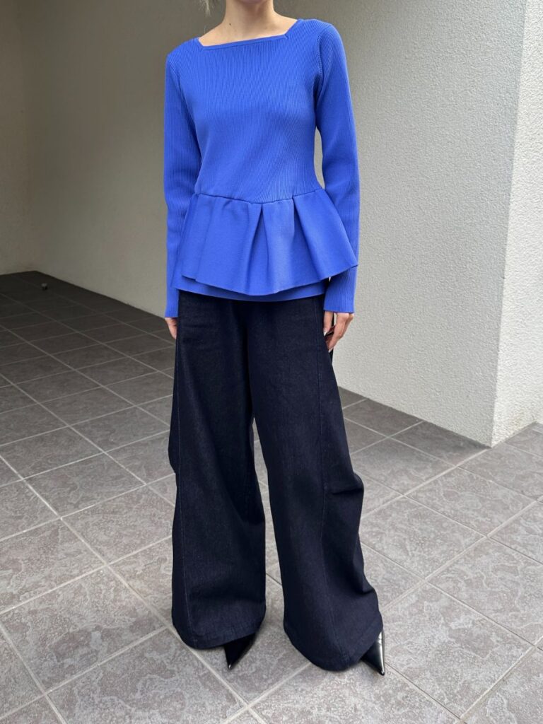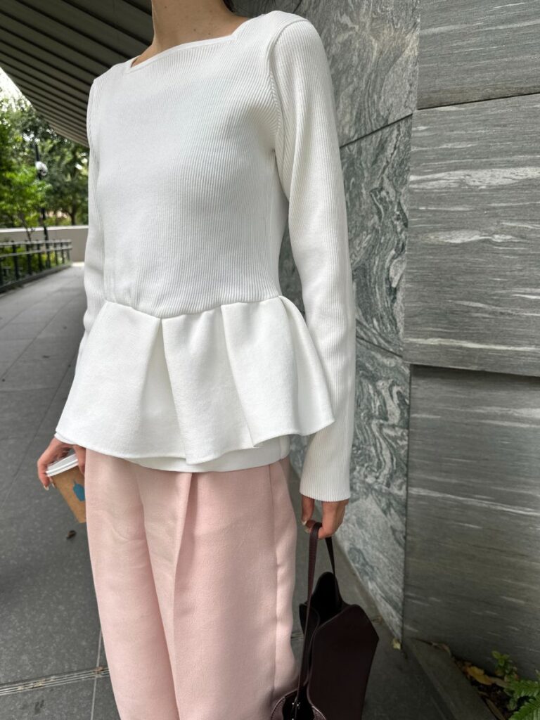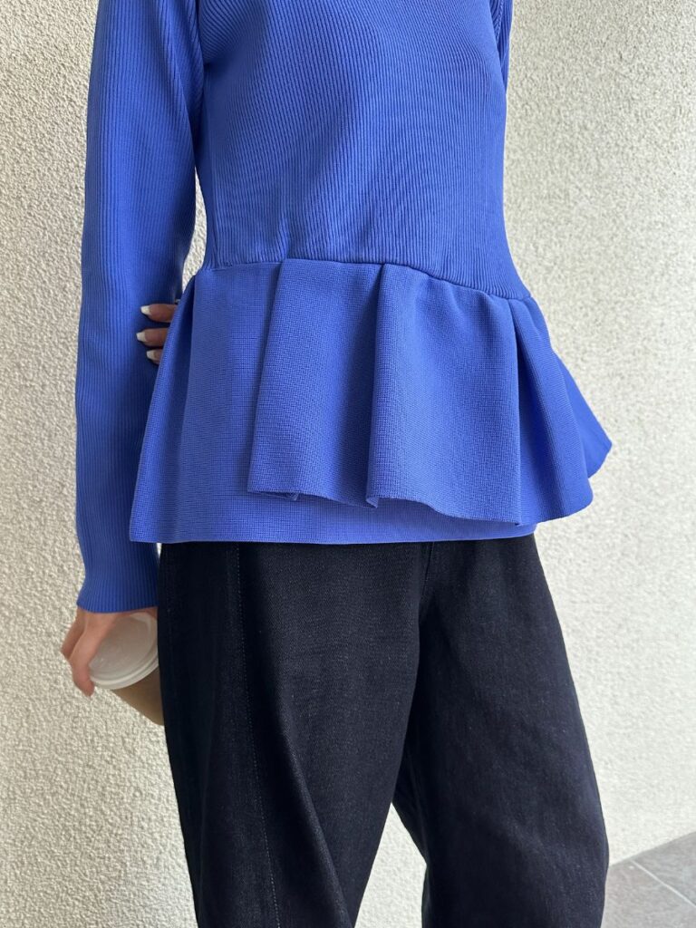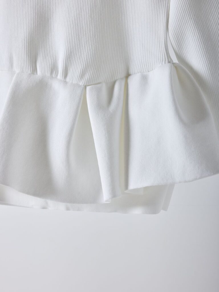 ふんわりと広がるペプラムシルエットが美しい、主役級のニットトップス。