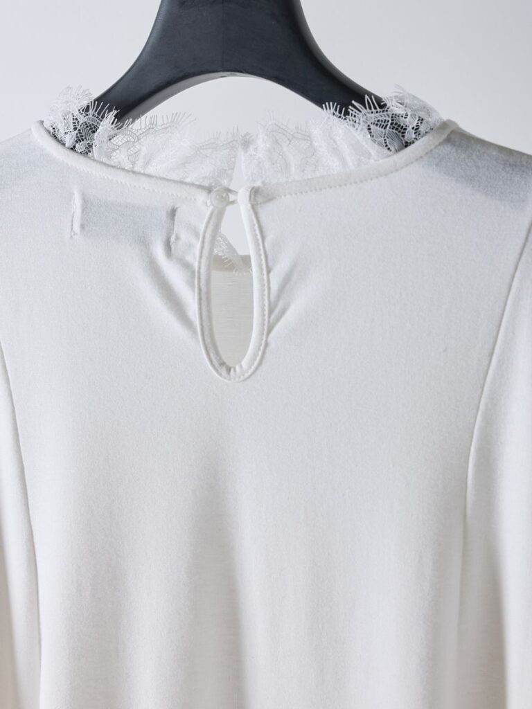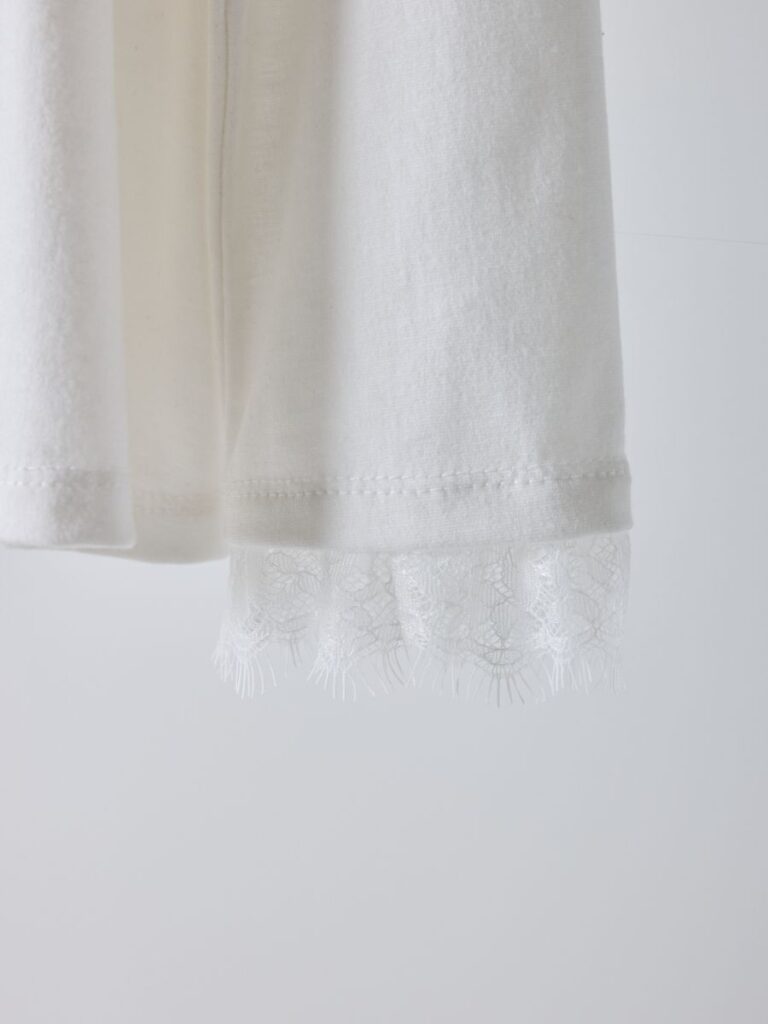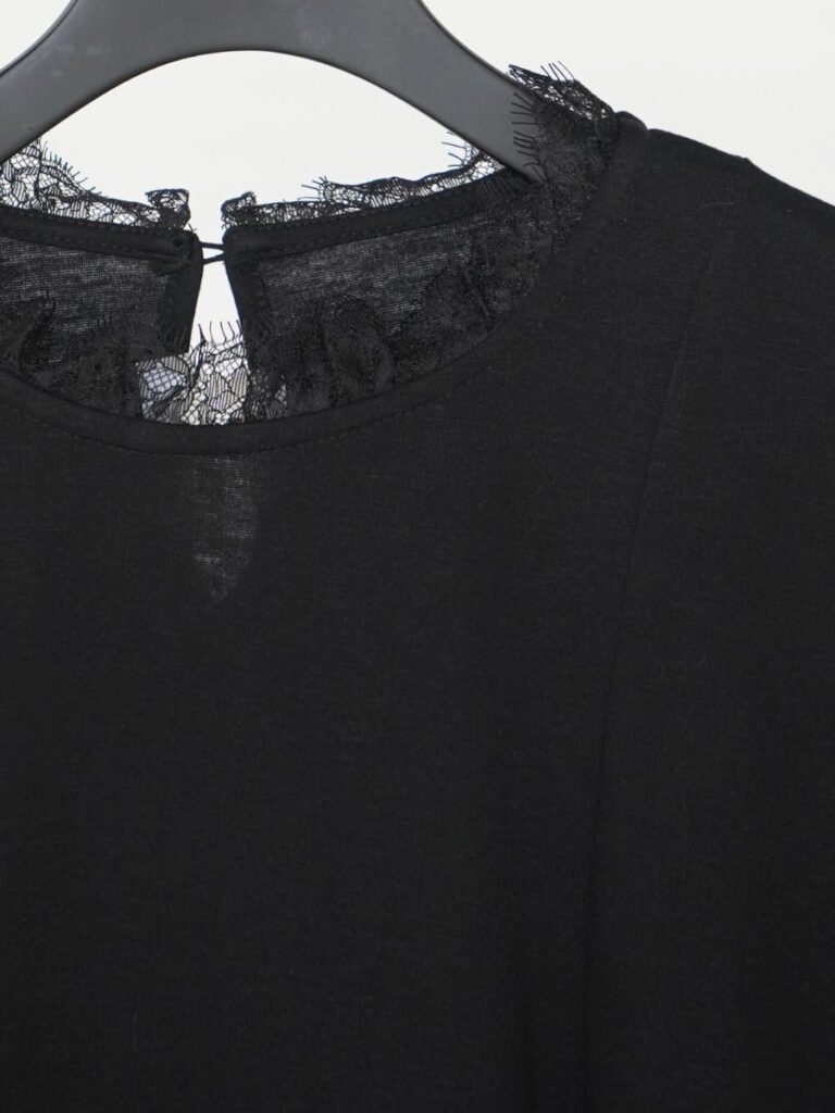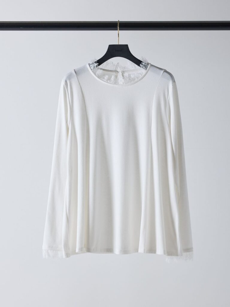 「繊細なレースが引き立つ、大人のフレアTシャツ。」