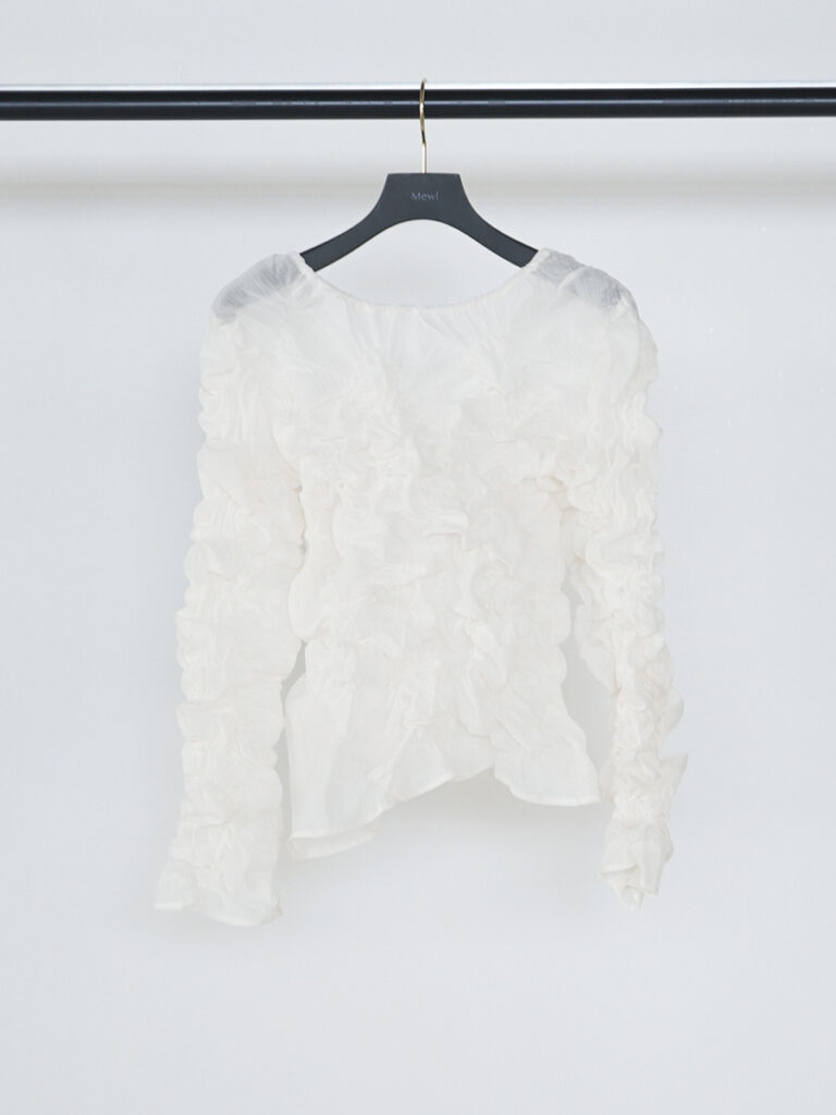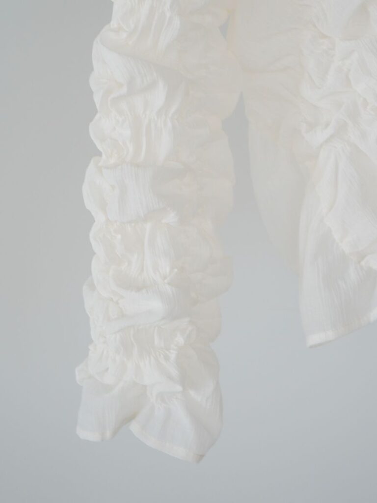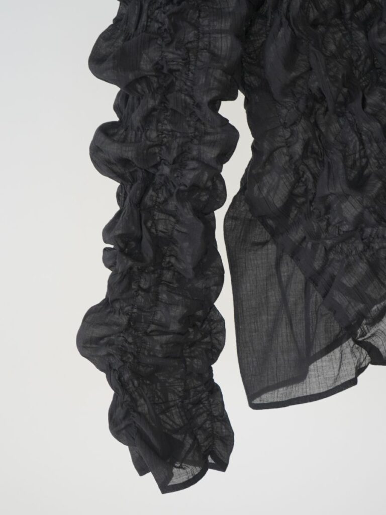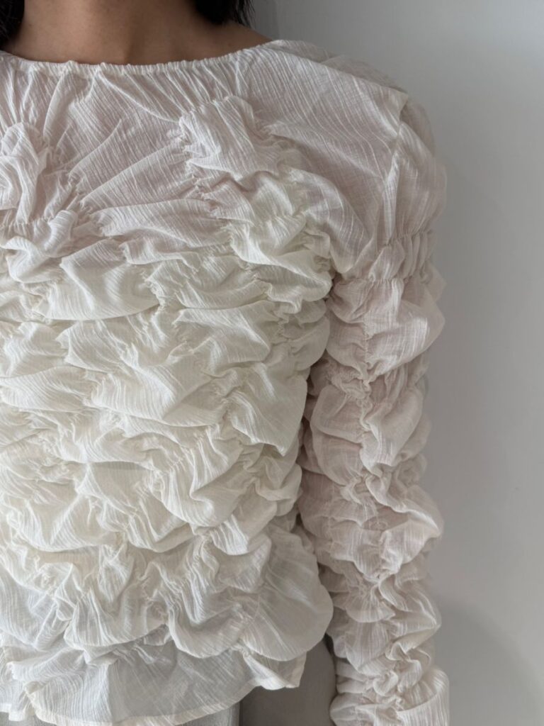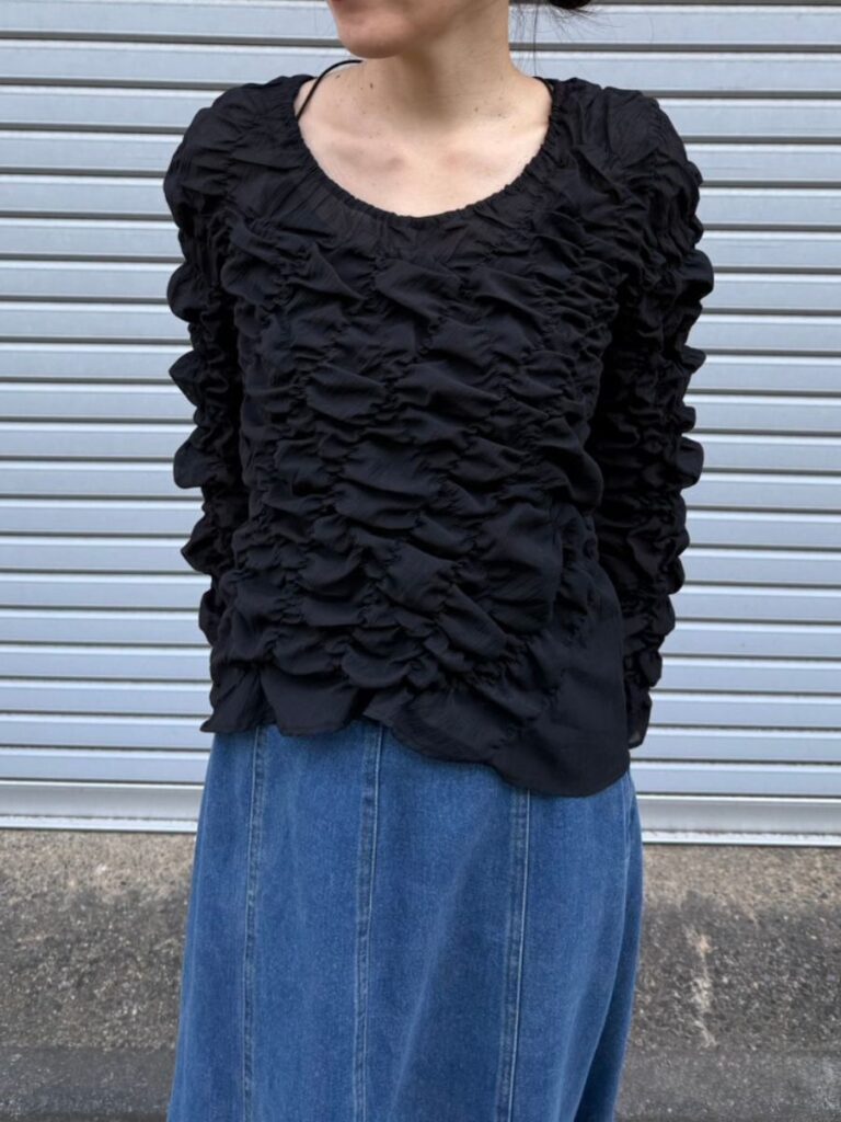 「くしゅっとした立体感が可愛い、表情豊かなシャーリングトップス。」