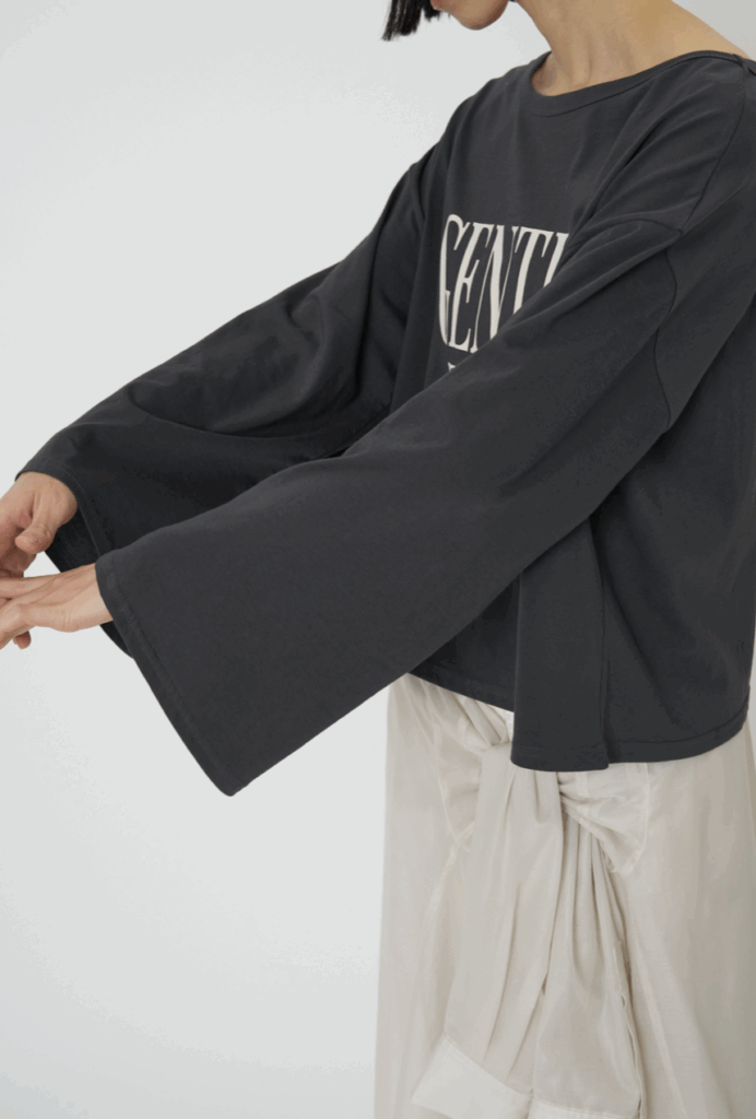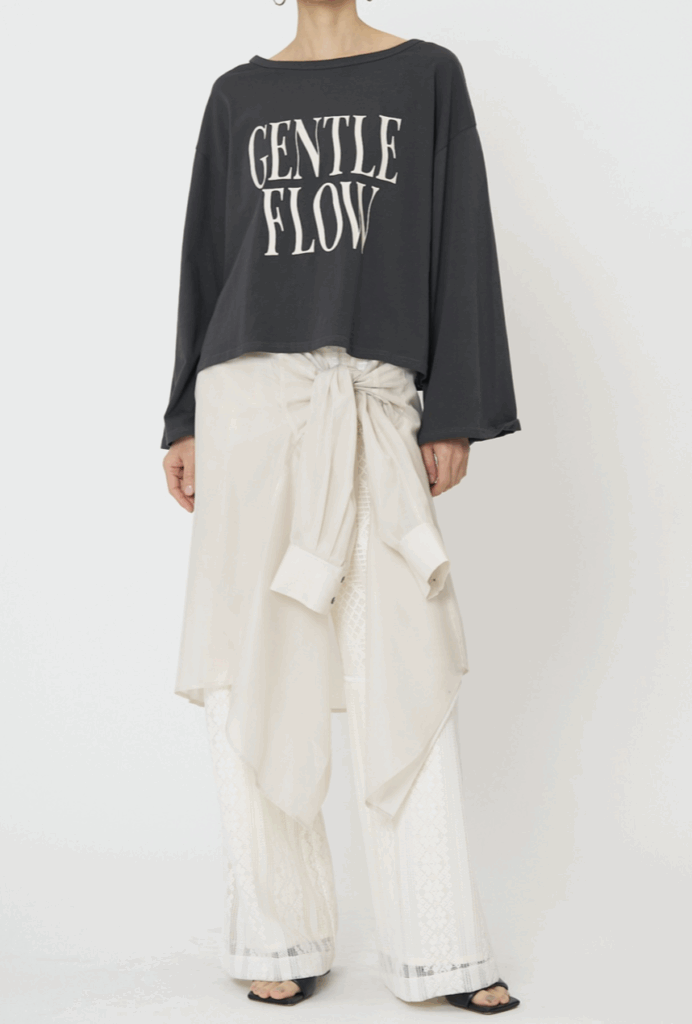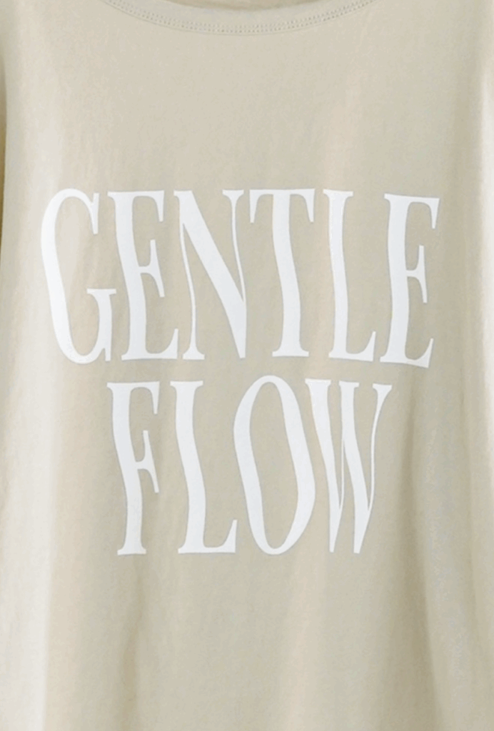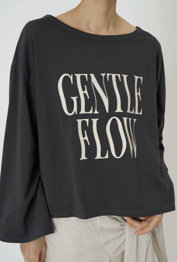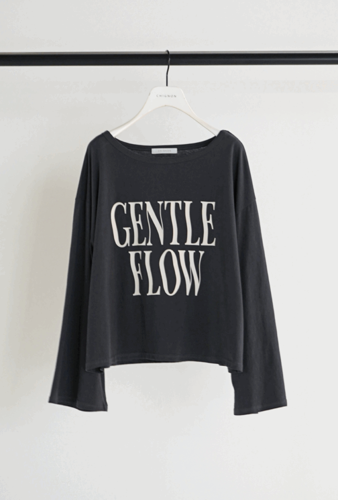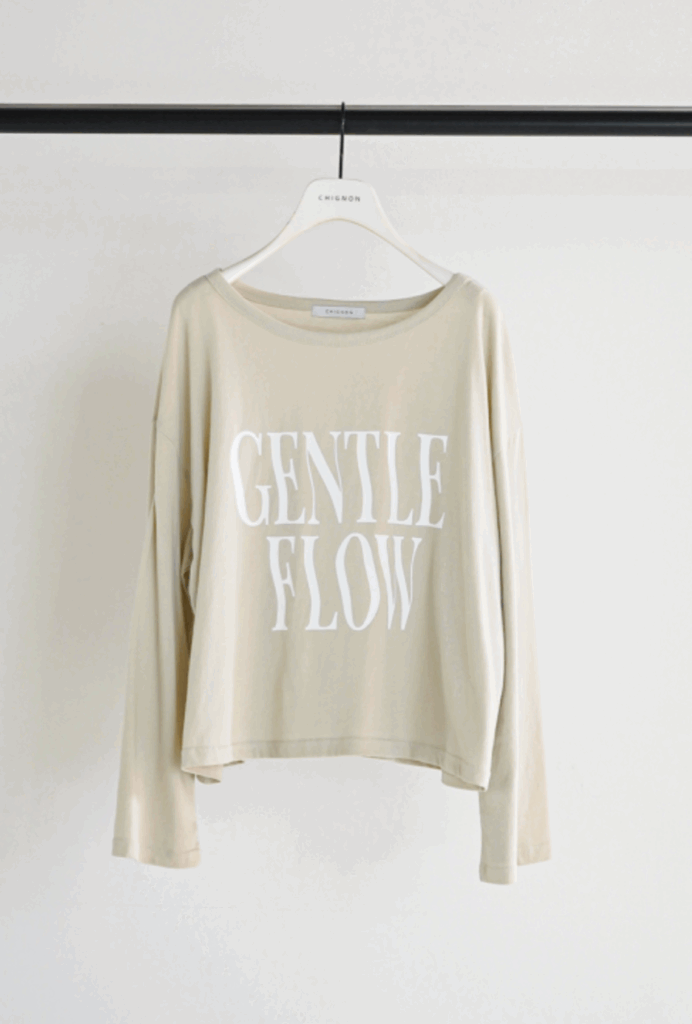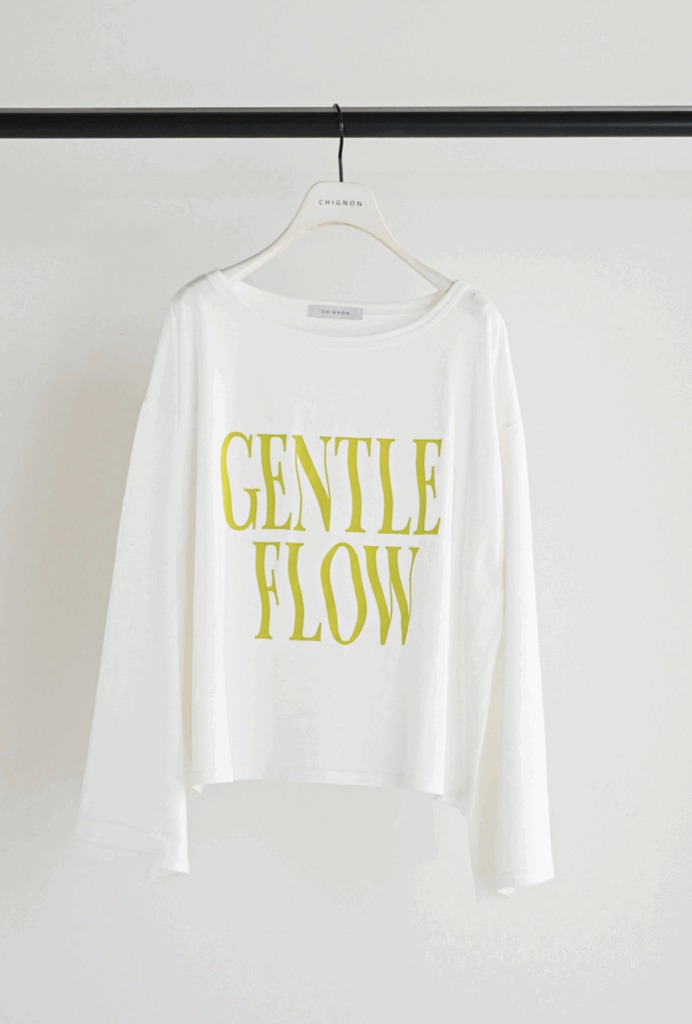 ロングシーズン活躍するプリントロンTee。GENTLE FLOW=”優しい流れ”の文字通り優しくゆれているロゴがキャッチーさを引き立たせトレンド感のあるロンTに仕上がりました。柔らかく落ち感のある素材を使用し、素肌にも心地よいです。