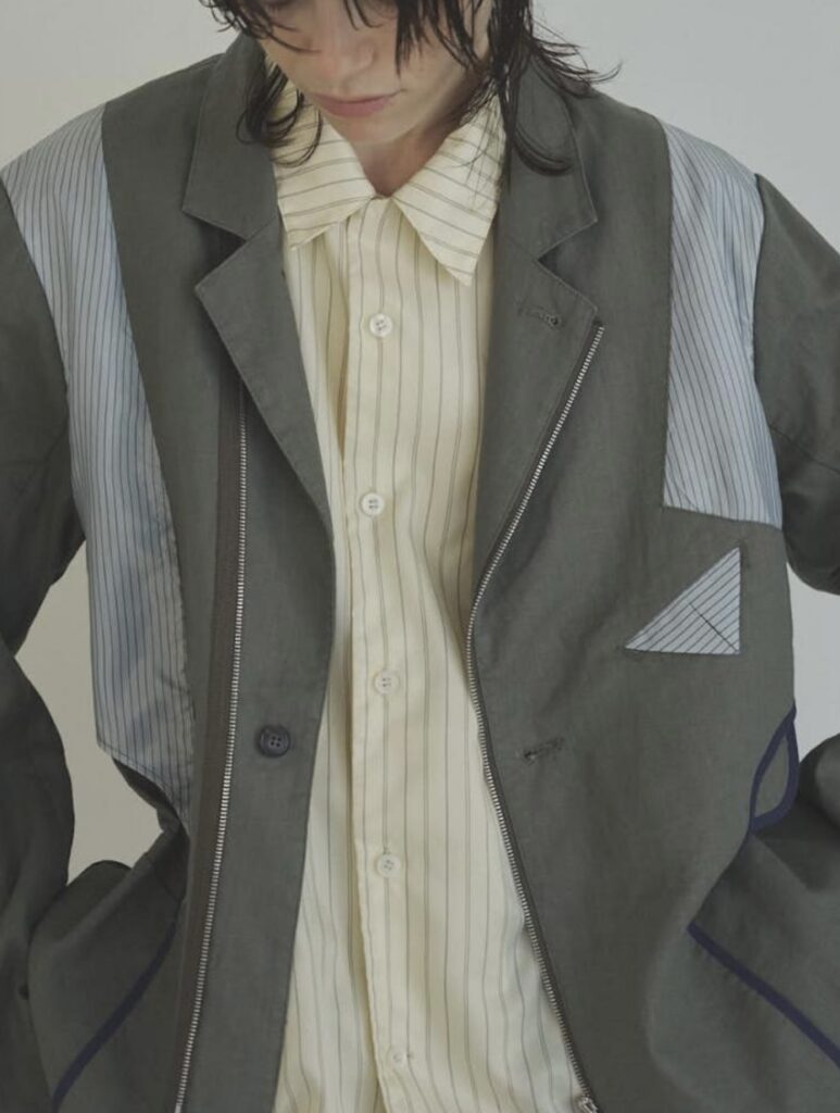 そして最大の特徴は、スーツ職人の技術をあえて表に出した“インサイドアウト”デザイン。裏地を修正しやすいように考えられたお台場仕立ての見返しをアシンメトリーに配置することで、デザイン性を増しています。