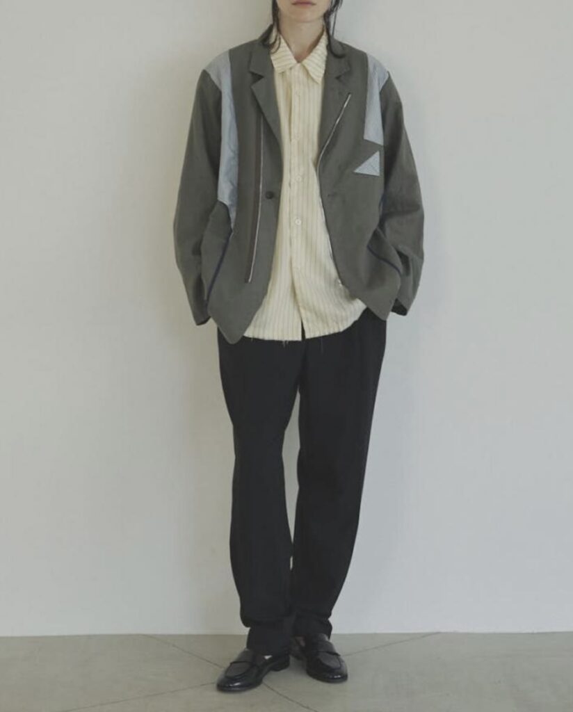 ゆとりのあるシルエットながら、袖付けには裄綿(ゆきわた:ジャケットやコートの袖山に入れる芯地)を仕込み、だらしなく見えない凛とした佇まいに。