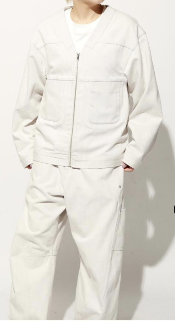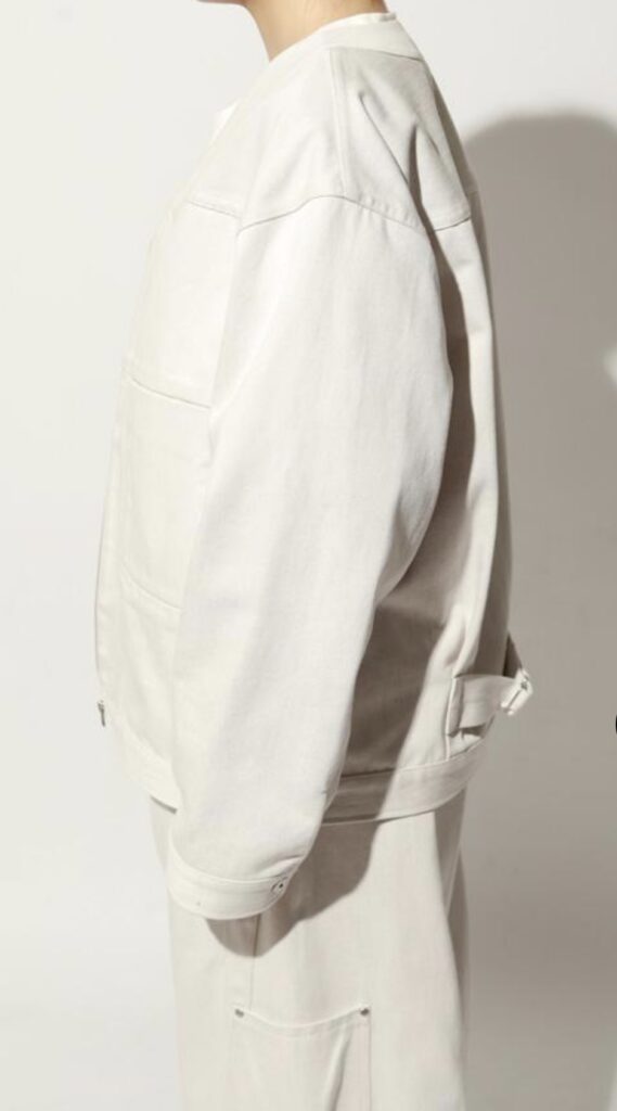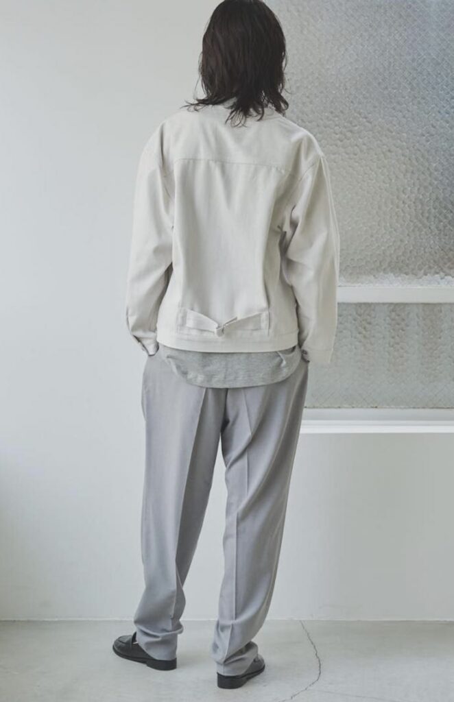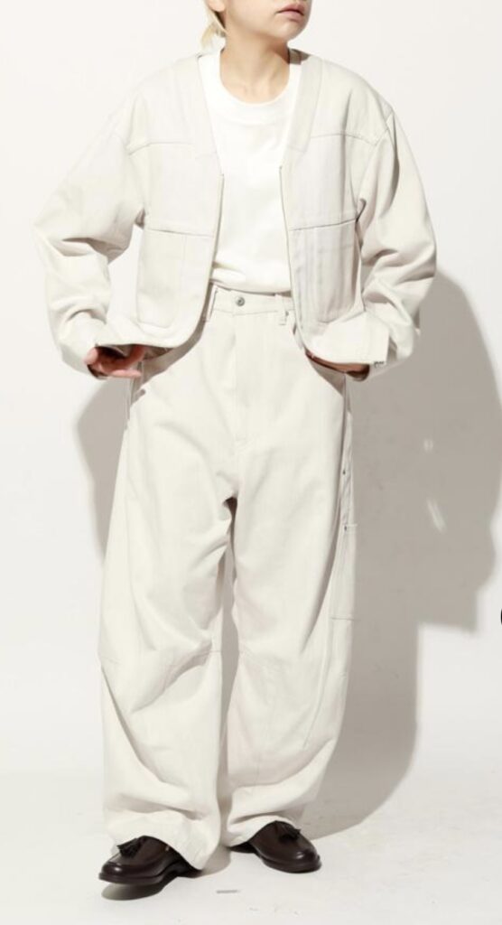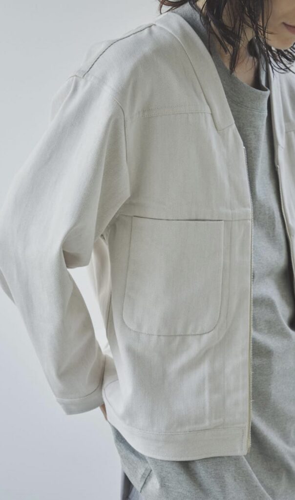ホワイトデニムにはベージュの横糸を差し込むことで、真っ白ではない独特なニュアンスカラーに仕上げました。