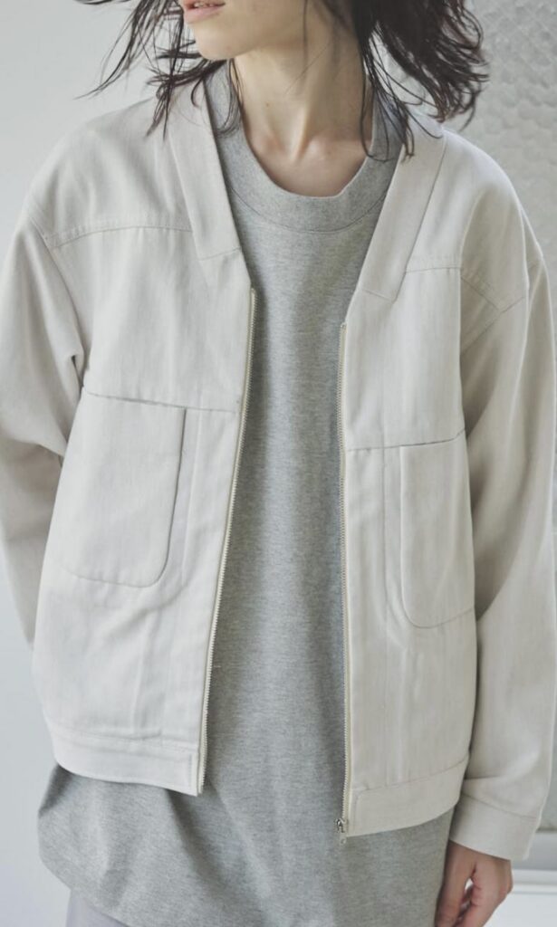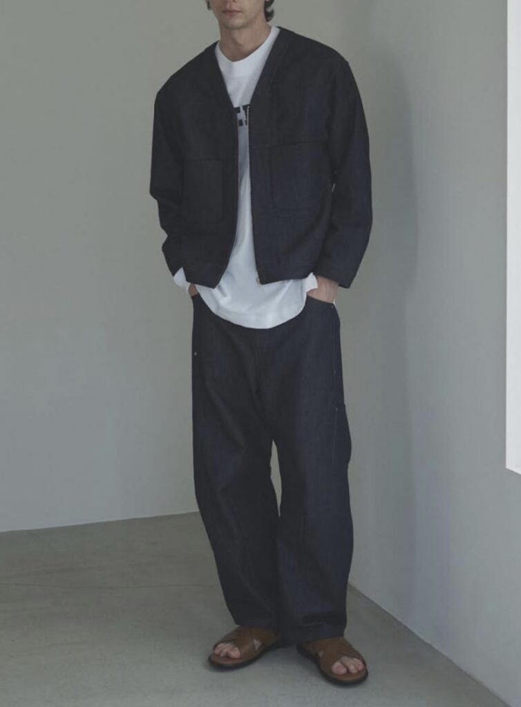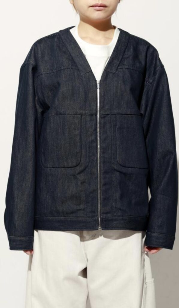 ●立体オーバーオールズ(26155-9910C)とセットアップ可シンプルに研ぎ澄ます、大人のVネックデニムブルゾン。